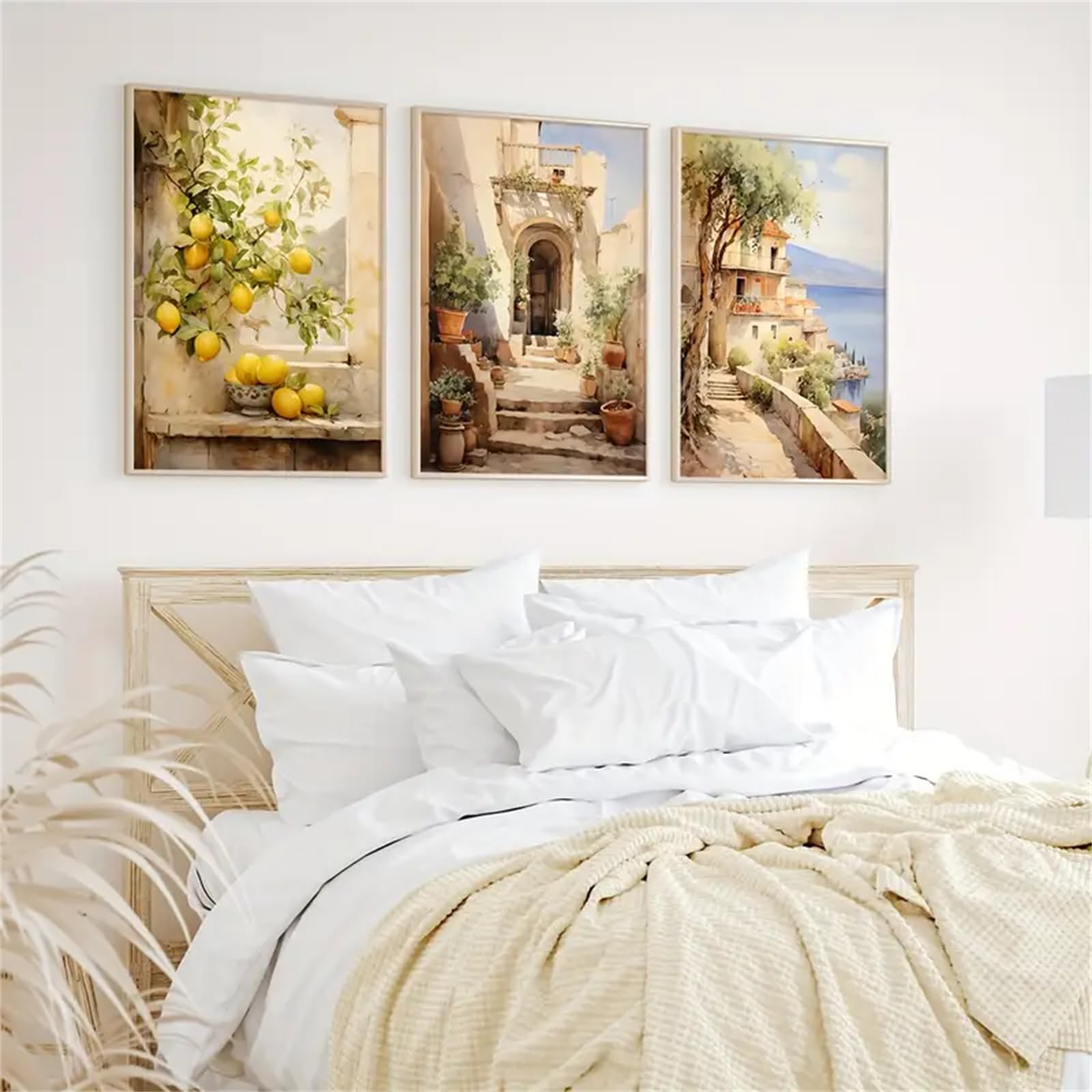 Urlaubsfeeling für deine Wände! Dieses 3er-Poster-Set bringt mediterranes Flair in dein Zuhause. Mit Zitronen-Motiven und Olivenbäumen fühlst du dich sofort wie am Mittelmeer. Die vintage Landschaftsbilder in warmen Farben sorgen für eine total entspannte Atmosphäre. Gedruckt auf hochwertiger Leinwand in verschiedenen Größen von 20x30cm bis 50x70cm. Ohne Rahmen, aber du findest easy passende Rahmen im Handel. Perfekt fürs Wohnzimmer, Schlafzimmer oder Esszimmer. Die kräftigen Farben und der detailreiche Druck sehen einfach klasse aus. Ob du Urlaubsstimmung verbreiten willst oder einfach deinem Zimmer einen frischen Look verpassen - diese Poster sind genau das Richtige! Auch als Geschenk eine super Idee. Hol dir das Mittelmeer nach Hause!