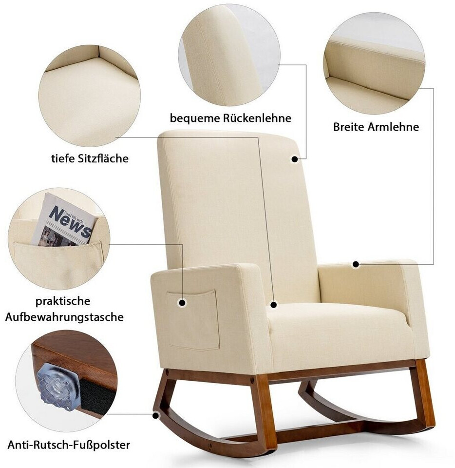 Entspannung pur für deine Veranda! Dieser wunderschöne Schaukelstuhl aus massivem Hartholz lädt zum gemütlichen Schaukeln ein. Mit der hohen Rückenlehne und ergonomischen Sitzfläche sitzt du bequem stundenlang. Der Polyurethan-Lack schützt vor Wettereinflüssen, die rostbeständige Hardware hält lange. Ofengetrocknetes Holz verhindert Risse und Verformungen. Teilweise vormontiert - schnell aufgebaut und sofort bereit für entspannte Stunden an der frischen Luft. Maximal 250 Pfund belastbar. Perfekt für einen kühlen Drink am Abend oder ein gutes Buch an sonnigen Tagen!