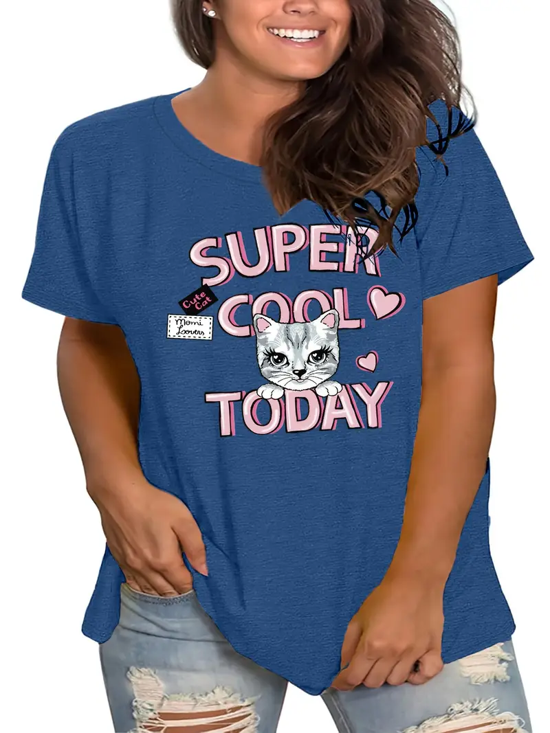 Neon T-Shirt Für Damen Mit Katzenprint - Rundhalsausschnitt & Kurzärmelig - Lustiges Statement Shirt