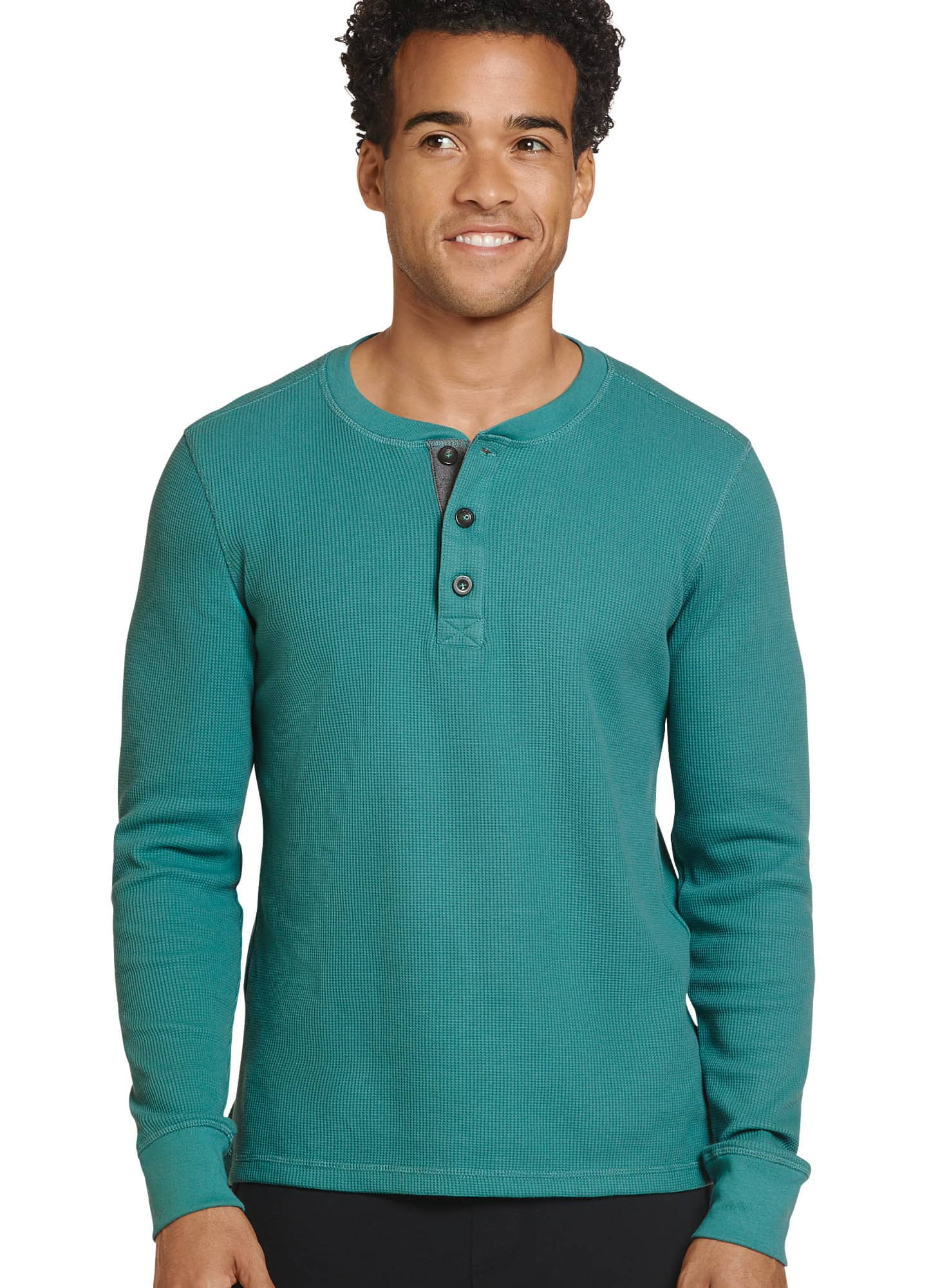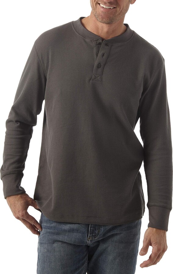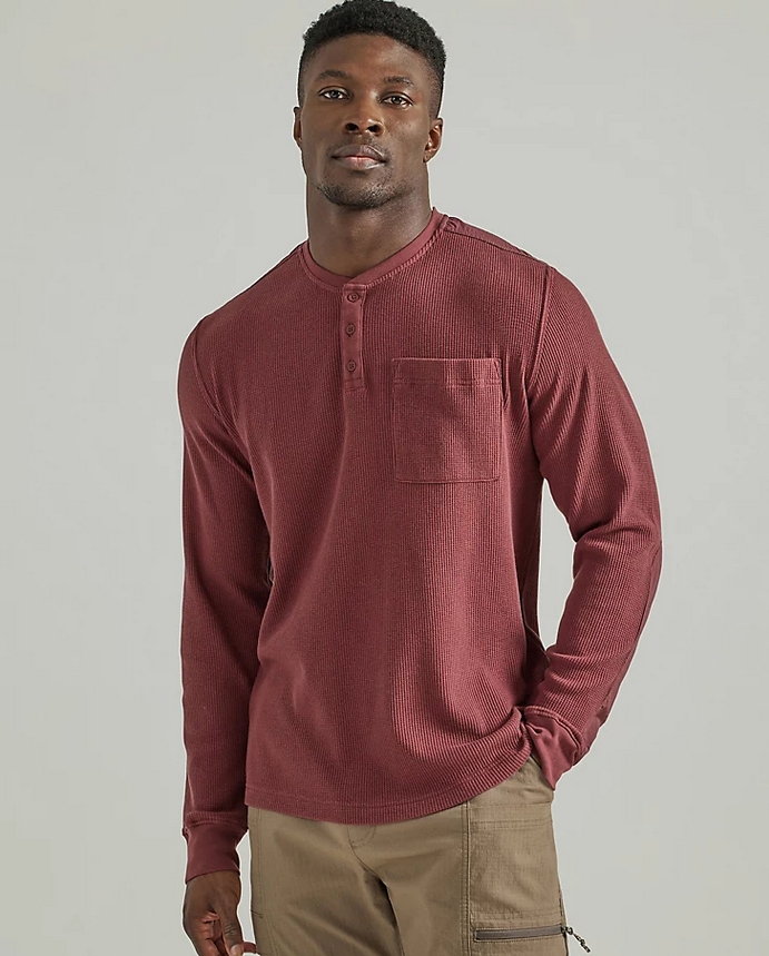 Wrangler Authentics Herren Henley Shirt Langarm - Waffelmuster Baumwolle