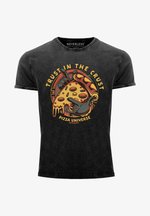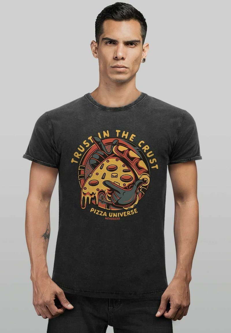Neverless Herren T-Shirt Mit Pizza Katze Rückendruck - Lustiges Comic Design Baumwolle