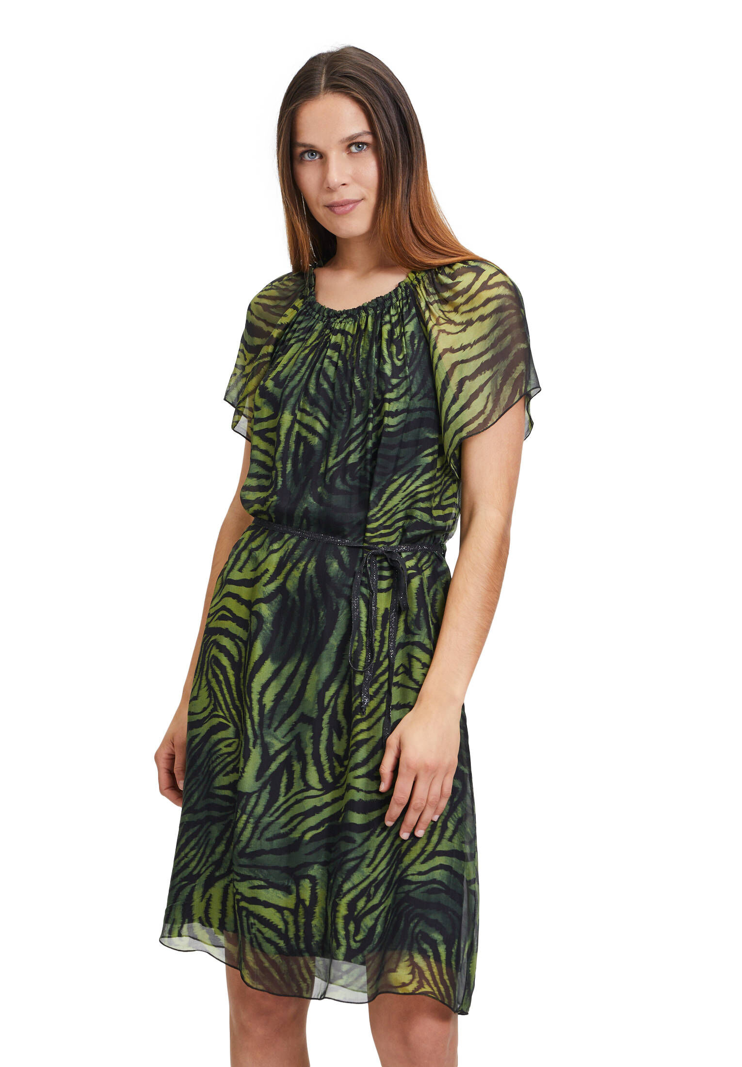 Unser Model (175cm) trägt Größe 36 - das gibt dir ne gute Orientierung für deine Größenwahl. Der Stoff fällt super angenehm und bewegt sich mit dir mit.