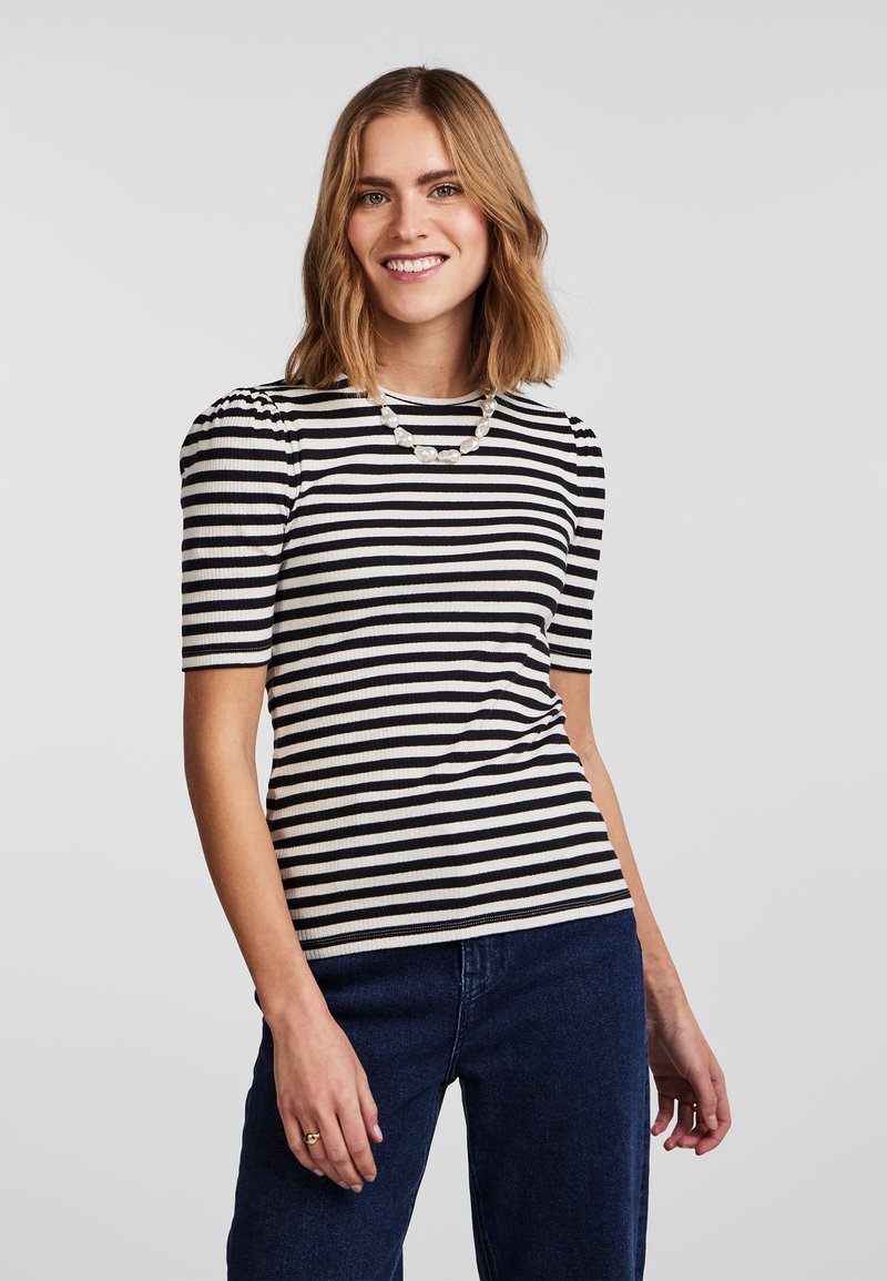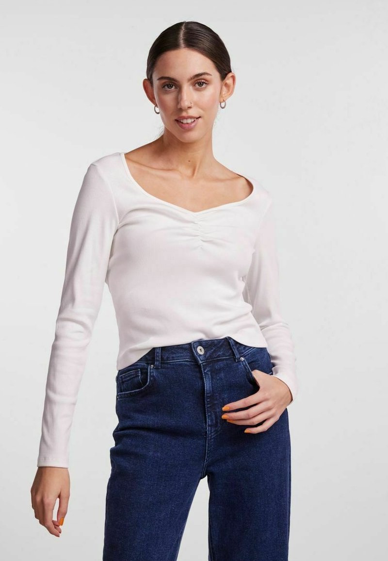 PIECES Damen T-Shirt Pctania - Gerafftes Design, Fein Gerippt