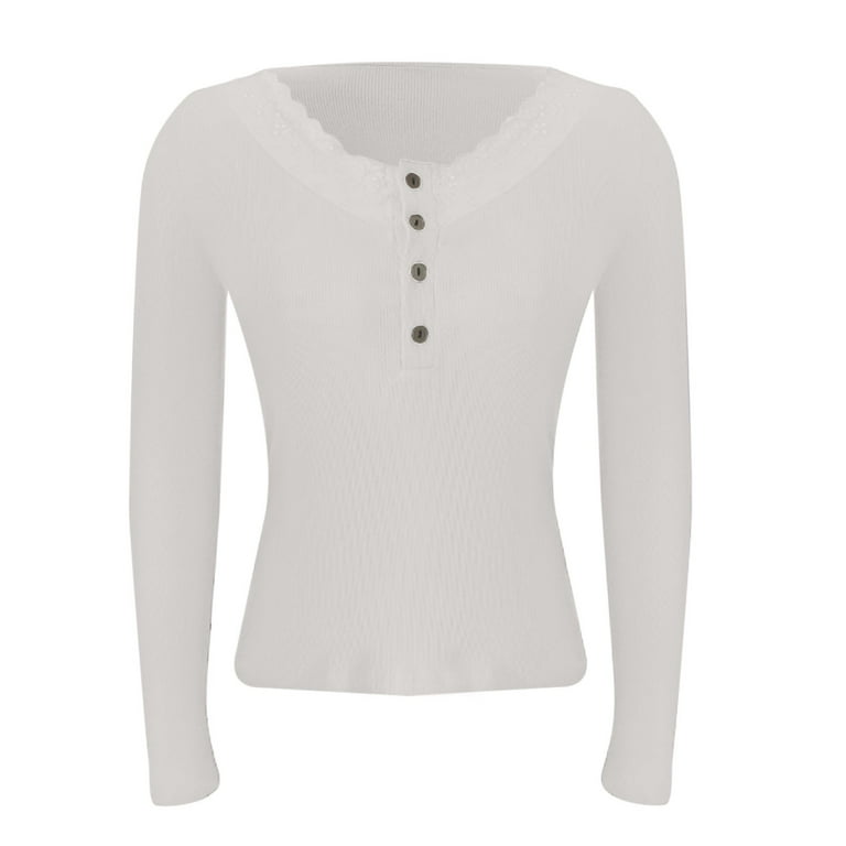 Shownicer Damen Langarm T-Shirt - Slim Fit, Y2K Style, Weiches Basic Top, Rundhals