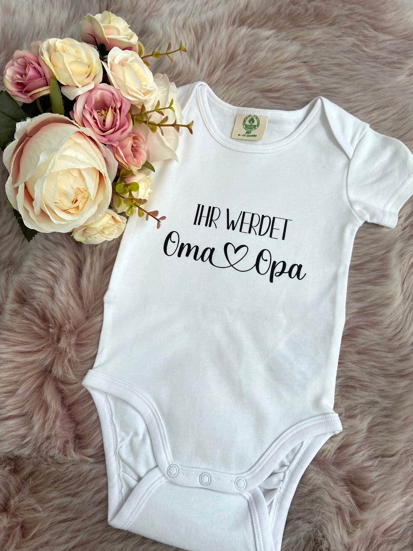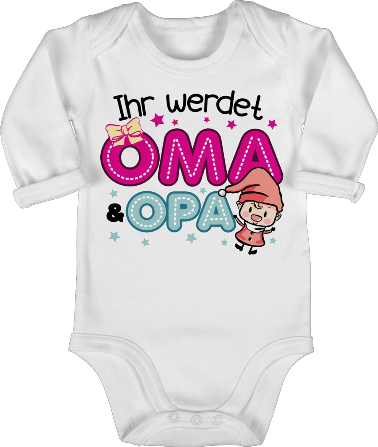 Oh wie süß! Dieser Babybody mit dem niedlichen \\\Ihr werdet Opa und Oma\\\-Motiv ist einfach perfekt, um die freudige Nachricht zu verkünden. Der Storch bringt nicht nur Babys, sondern auch strahlende Gesichter bei den werdenden Großeltern!\\n\\nDas Besondere daran:\\n• 100% Bio-Baumwolle - superweich und hautfreundlich\\n• Praktischer Envelope-Ausschnitt - leichtes An- und Ausziehen\\n• Ton-in-Ton Druckknöpfe - nickelfrei und absolut unbedenklich\\n• Langärmlig - ideal für kühlere Tage\\n• Für Jungen und Mädchen gleichermaßen geeignet\\n\\nPerfekt als Geschenk zur Geburt oder zum Babyshower! Die Qualität stimmt: Hergestellt unter fairen Bedingungen in Bayern, wo wir großen Wert auf nachhaltige Produktion legen.\\n\\nPflege? Ganz einfach: Bei 30°C auf links waschen und bei mittlerer Temperatur bügeln. So hält der Body lange und sieht immer wie neu aus.\\n\\nOb fürs eigene Kind oder als Geschenk - mit diesem Body macht die Schwangerschaftsverkündung doppelt Spaß! Die niedliche Grafik mit den Herzen und dem Spruch sorgt für strahlende Augen bei allen Großeltern in spe.