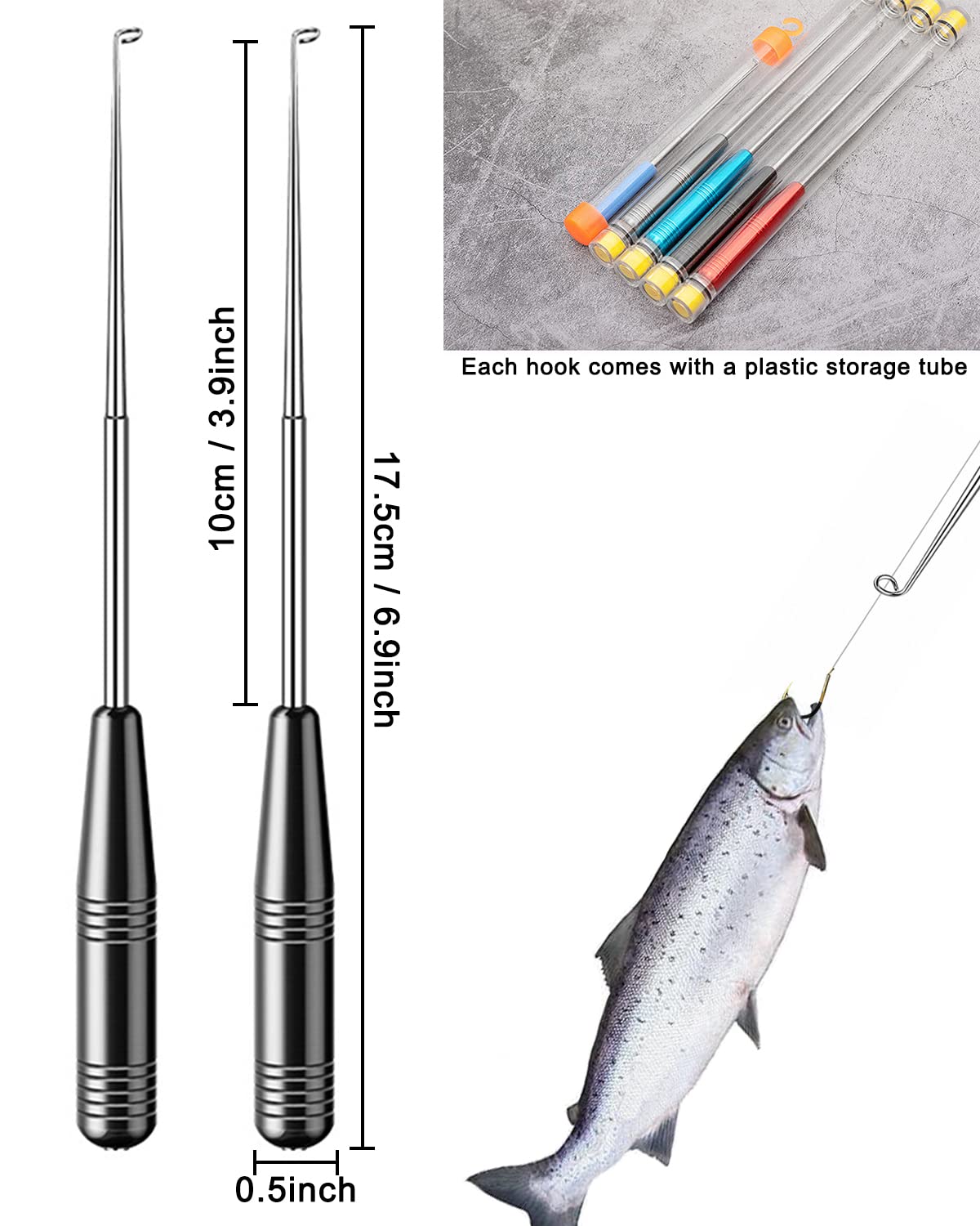 Perfektes Tool für jeden Angler! 4 praktische Hakenentferner aus rostfreiem Edelstahl - super für unterwegs. Kompakt und leicht, passen in jede Angelbox oder Jackentasche. Mit dem Sicherheits-Extraktor kriegst du jeden Haken safe aus dem Fisch, ohne ihn zu verletzen! Einfach anwenden: Haken einhaken und rausziehen - viel besser als mit den Fingern! Das Aufbewahrungsrohr hält alles ordentlich zusammen, nichts geht verloren. Ideal für den Angelausflug - immer griffbereit! Auch für schwierige Hakenpositionen geeignet. Macht das Catch-and-Release viel einfacher und tierfreundlicher! Die Edelstahl-Ausführung rostet nicht, hält ewig. Super Preis für 4 Stück - einen für dich, Rest für Angelkumpels! Ein Muss in jeder Angelausrüstung! Einfach, effektiv und super praktisch - damit wird das Lösen von Haken zum Kinderspiel!