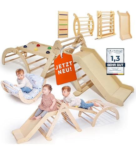 MISIOO Kletterbogen Set Mit Rutsche & Kissen - Sicherer Spielbogen Für Kinder Ab 1 Jahr