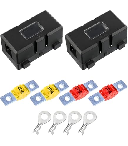 6 Stück Kfz Midi Sicherungshalter Set - 40A 50A 60A Mit Kabelklemmen & Schrumpfschläuchen