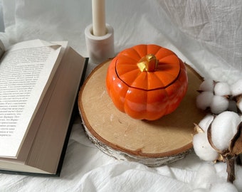 Herbstliche Gemütlichkeit pur! Diese niedliche Kürbis-Duftkerze aus natürlichem Sojawachs verbreitet 28 Stunden lang einen wunderbaren Pumpkin-Spice-Duft in deinen vier Wänden. Im dekorativen Keramikbehälter ist sie nicht nur eine Duft-, sondern auch eine echte Augenweide. Perfekt für die Herbst- und Halloween-Deko auf dem Kaminsims, Esstisch oder im Eingangsbereich. Mit 180g Inhalt und in Orange erhältlich. Schafft sofort eine kuschelige Atmosphäre für gemütliche Abende. Ein tolles Geschenk für alle Herbst-Liebhaber!
