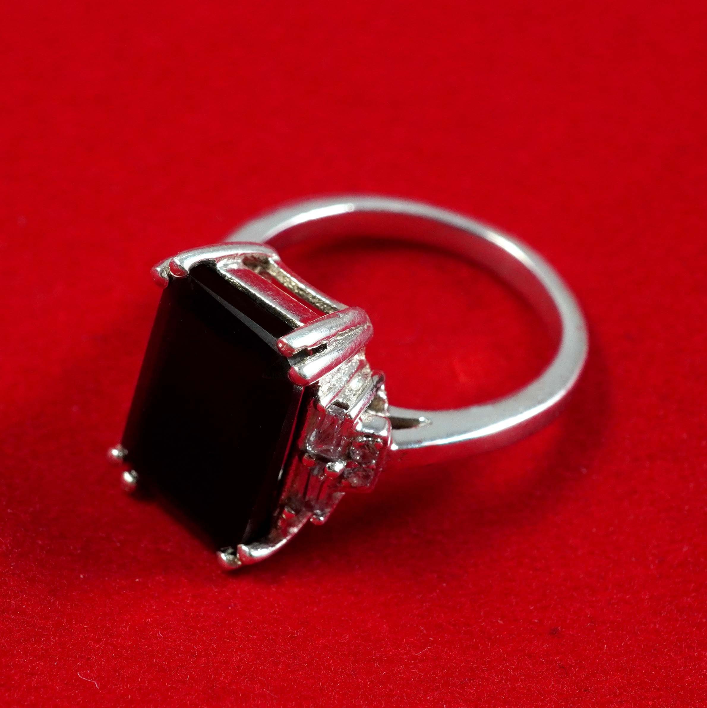 KINGWHYTE Schwarzer Onyx Ring 925 Sterling Silber - Dreifach Mond Göttin Ring Größe 8