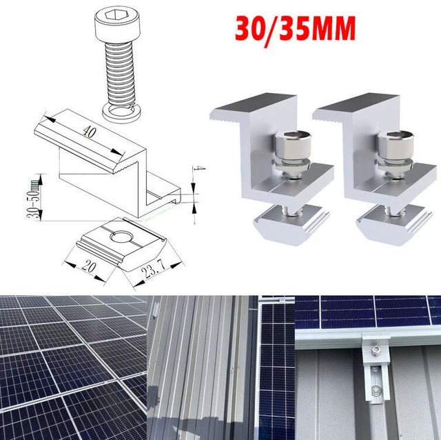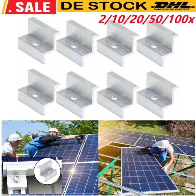 10x Solar Endklemmen 30mm - Aluminium, Silber, Für PV-Module Mit Schrauben
