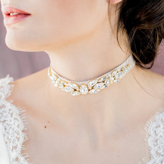Ushiny Strass Choker Halskette Silber - Kristall Halskette Mit 15cm Verlängerung