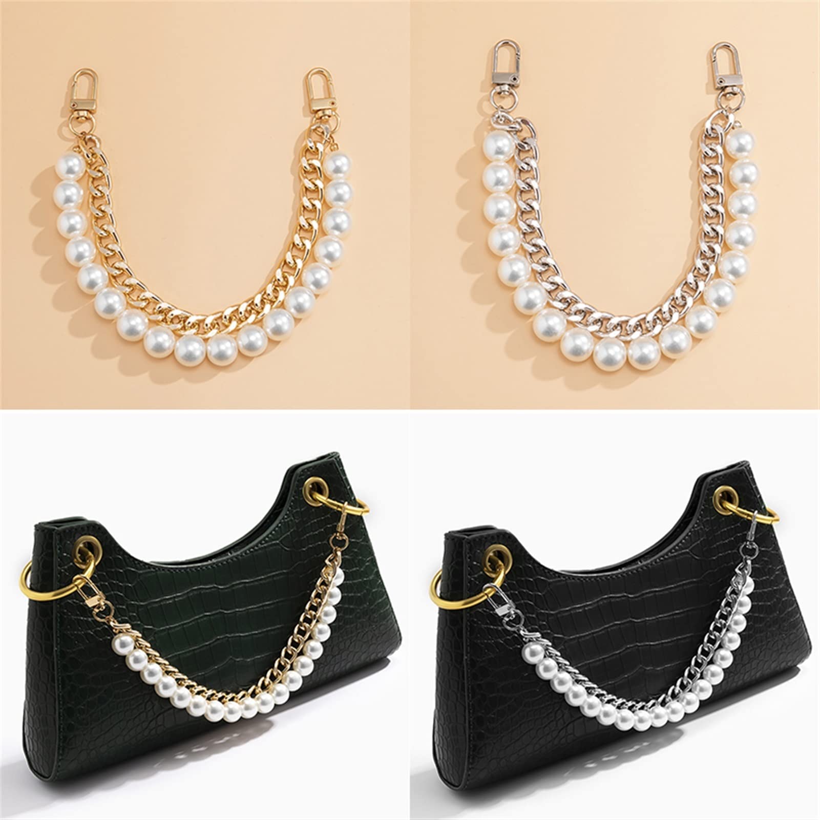 HIAKDOFT Perlen Handtaschenkette Silber - Modischer Schulterriemen Ersatz