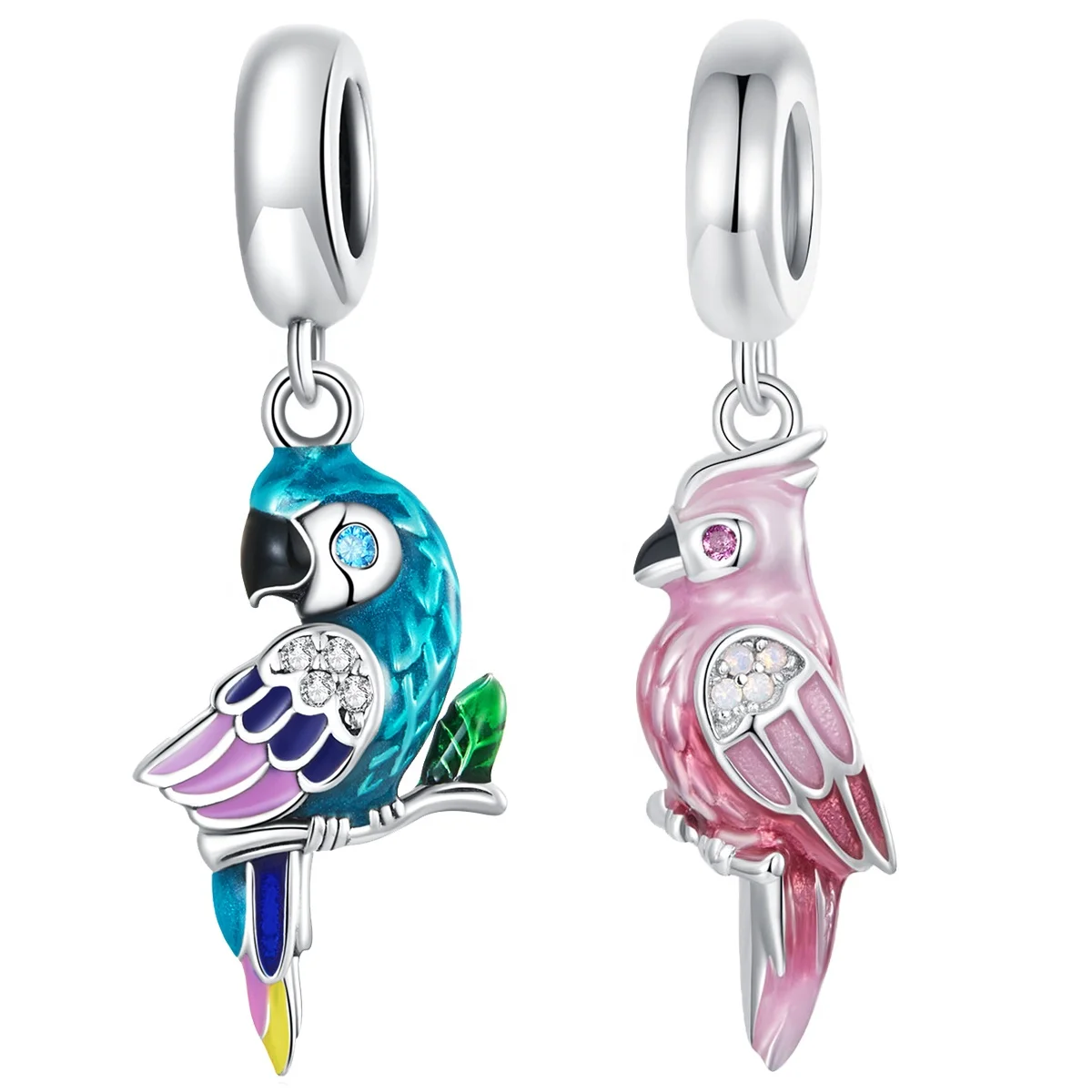 925 Sterling Silber Papagei Anhänger - Charm Für Halskette & Armband