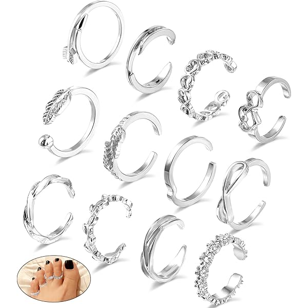 Tyqour 12er Set Silber Zehenringe - Verstellbarer Fußschmuck Für Damen