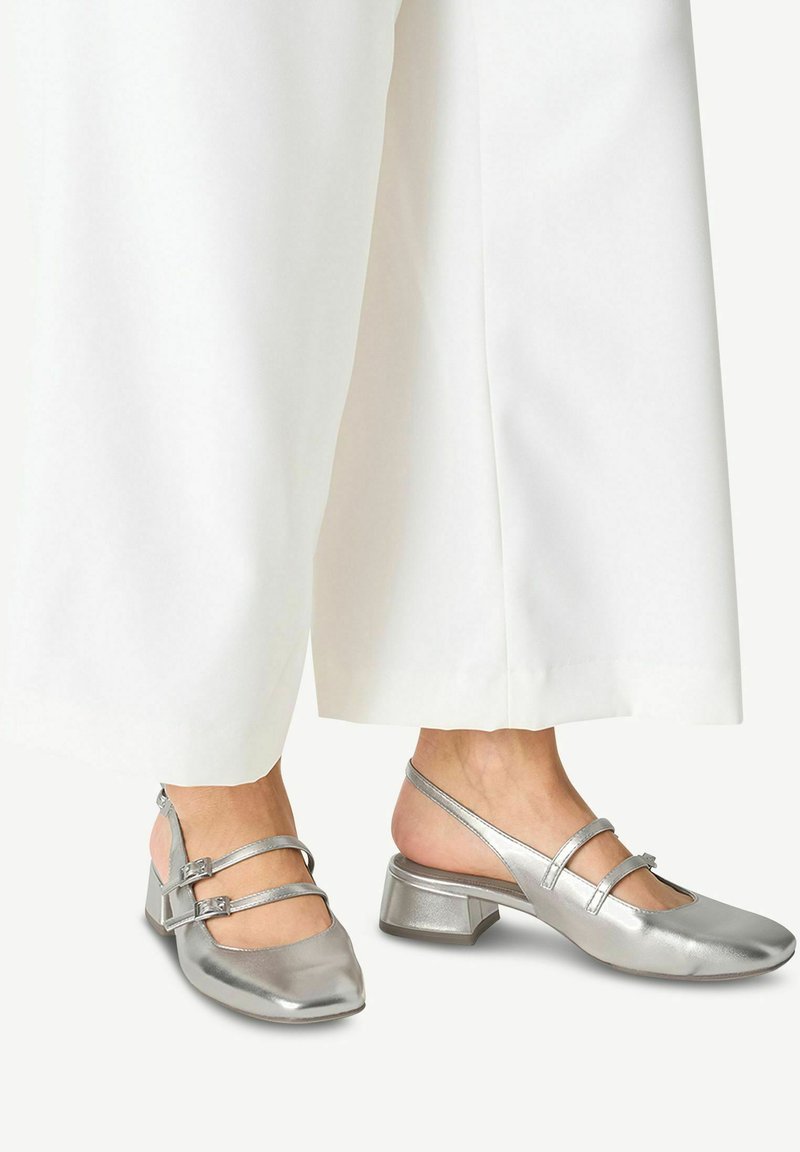 Silberne Damen Pumps Mit Spitze - 5cm Blockabsatz Für Hochzeit & Dates