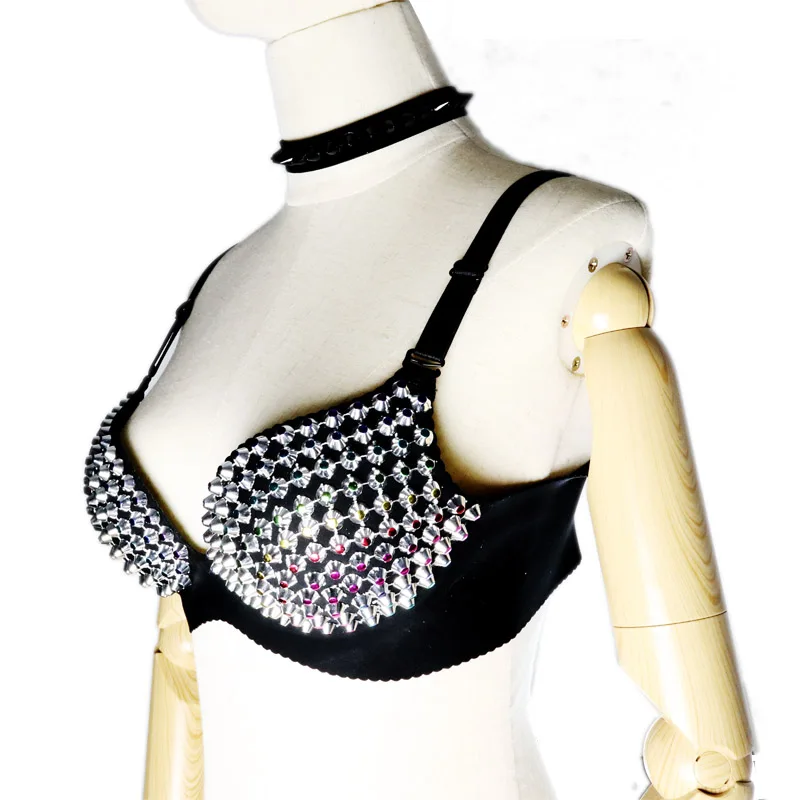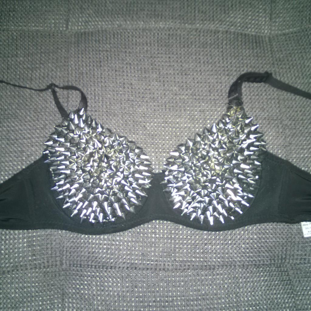 Punk BH Mit Nieten - Silberner Metallic BH Mit Stacheln Für Club & Karneval