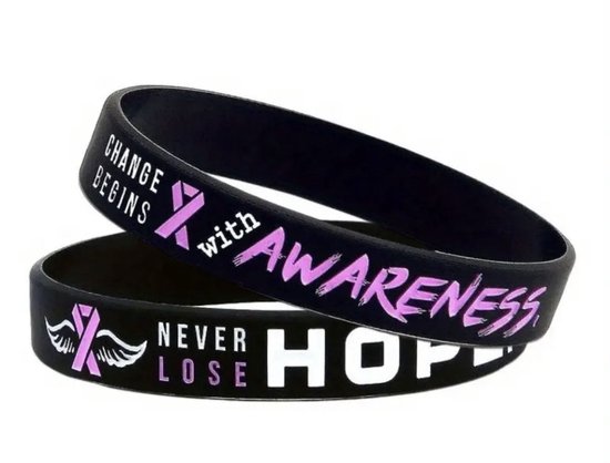 Unterstütze den guten Zweck mit diesen hochwertigen Pink Ribbon Armbändern! Im Set sind 24 Stück enthalten - perfekt für Spendenaktionen, Marathons oder Aufklärungsveranstaltungen zum Thema Brustgesundheit. Aus flexiblem, langlebigem Silikon gefertigt, das nicht verblasst oder bricht. Jedes Armband trägt inspirierende Worte wie 'Glaube', 'Mut', 'Hoffnung' und 'Stärke' - eine schöne Botschaft der Unterstützung für Betroffene. In den Farben Rosa, Weiß und Schwarz erhältlich, sodass für jeden Geschmack etwas dabei ist. Super für Unternehmen, Schulen oder Organisationen, die Bewusstsein für Brustkrebs-Früherkennung schaffen wollen. Zeige Solidarität und mache auf dieses wichtige Thema aufmerksam! Die Armbänder sind dehnbar und passen an jedes Handgelenk.