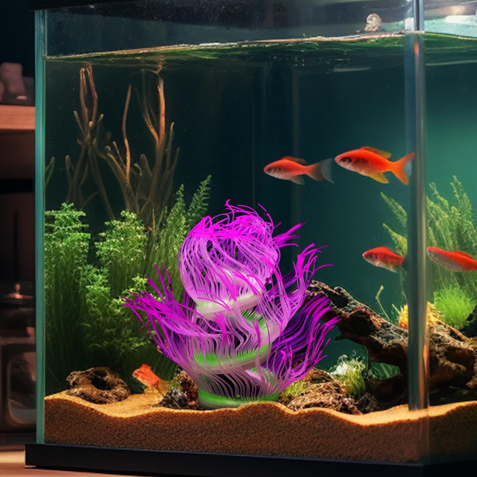 Aquarium Seeanemonen Deko | Silikon Weich | Leuchtend Unter Licht | Süß- & Salzwasser