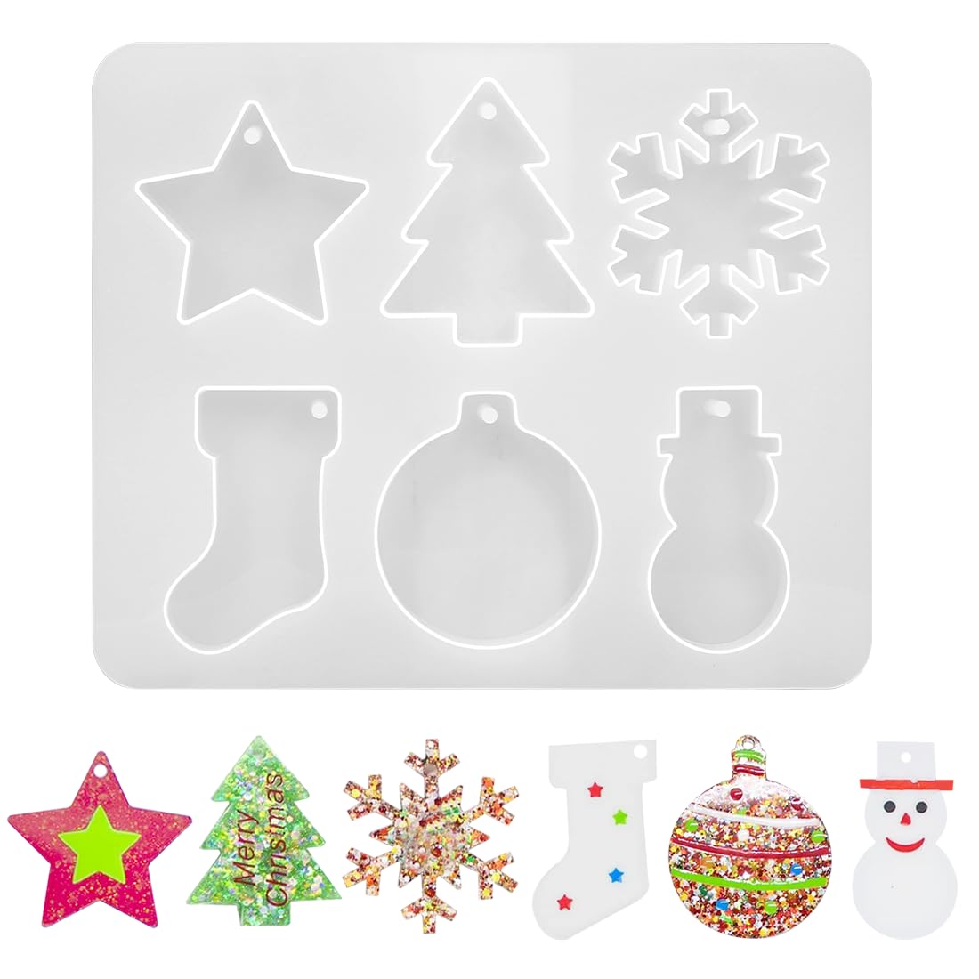 Weihnachtliche Bastelstunde gefällig? Diese Lyivisk Schneeflocken Silikonformen machen das Gestalten von Weihnachtsdekoration zum puren Vergnügen! ❄️🎄\n\nIm Set sind 4 verschiedene Silikonformen enthalten - genug für die ganze Familie oder um viele verschiedene Anhänger zu gestalten! Jede Form ist ca. 11,5 x 10 cm groß - perfekt für Christbaumschmuck, Schlüsselanhänger oder kleine Geschenke.\n\nDas flexible Silikon macht das Entformen zum Kinderspiel: Einfach nach dem Aushärten leicht drücken und schon löst sich dein Kunstwerk perfekt aus der Form! Die glatte Oberfläche sorgt für makellose Ergebnisse.\n\nJede Form hat ein praktisches Aufhängeloch - so werden deine Kreationen sofort zu fertigen Anhängern! Ob für den Weihnachtsbaum, Geschenkanhänger oder Schlüsselbund - die Möglichkeiten sind endlos!\n\nWas kannst du damit machen?\n• Epoxidharz-Anhänger mit Glitzer\n• UV-Harz-Kreationen mit Pigmenten\n• Ton-Ornamente für den Baum\n• Mit Trockenblumen und Kristallen\n• Bunte Weihnachtsdekoration\n• Persönliche Geschenke\n\nDas Material ist hochwertig und langlebig - die Formen wiegen je ca. 33g und können immer wieder verwendet werden. Einfach reinigen und schon geht's zur nächsten Bastelrunde!\n\nPerfekt für:\n• Kreative Adventszeit\n• Bastelnachmittage mit Kindern\n• DIY-Weihnachtsgeschenke\n• Therapie und Ergotherapie\n• Schulprojekte\n• Hobby-Künstler\n\nStell dir vor: Draußen schneit's, drinnen duft's nach Plätzchen und du gestaltest mit deinen Liebsten einzigartige Weihnachtsanhänger! Jede Schneeflocke wird ein Unikat!\n\nOb mit Glitzer, Farben oder natürlichen Materialien - deiner Kreativität sind keine Grenzen gesetzt! Die Formen sind kompatibel mit Epoxidharz, UV-Harz und Ton.\n\nMach diese Weihnachtszeit zu deiner kreativsten ever! Diese Silikonformen bringen Freude und weihnachtliche Stimmung in dein Zuhause! ✨