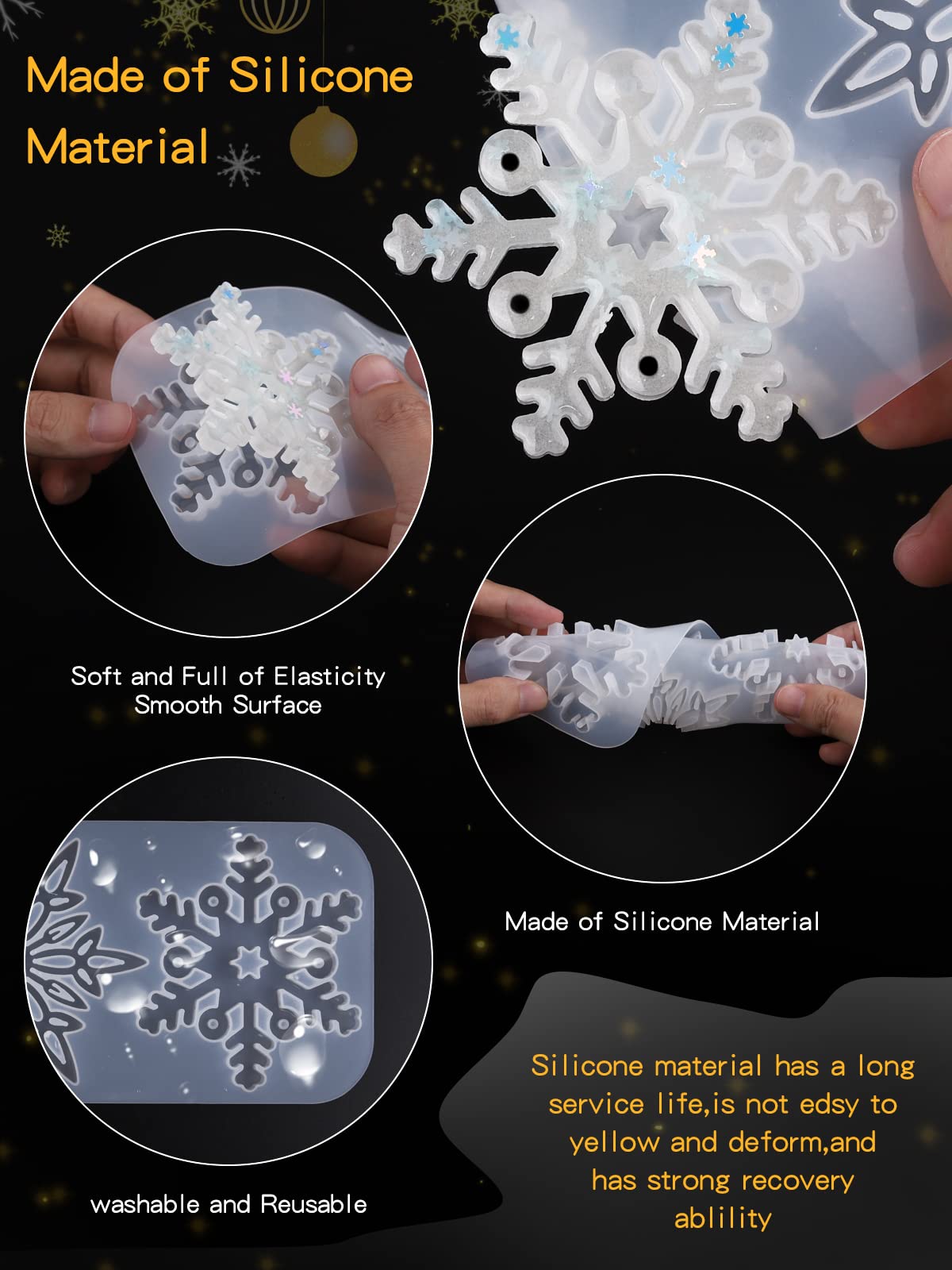 Lyivisk 4Pcs Schneeflocken Silikonform - Weihnachts Anhänger Harzformen DIY Basteln