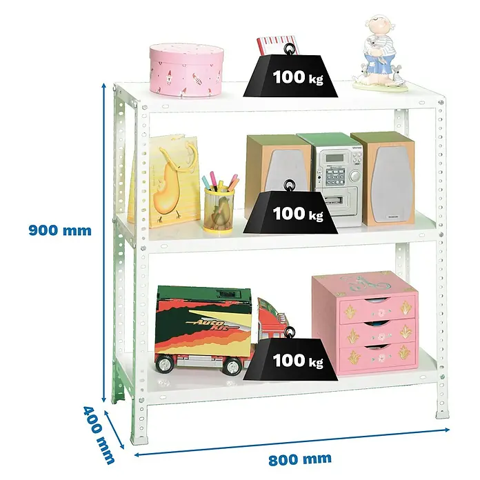 Dieses Simonrack Regal ist ein echter Alleskönner! Maße: 90x80x40cm (HxBxT) mit 3 stabilen Böden. Jede Ebene trägt bis zu 180kg - das ist richtig viel! Schraubenloses Stecksystem macht die Montage super einfach, nur Hammer aus Nylon benötigt. Inklusive 4 Kunststofffüßen zum Schutz deiner Böden. Aus hochwertigem Stahl S325 mit 1,5mm Dicke. Perfekt für Garage, Keller, Werkstatt oder Lager. Wackelt nicht und muss nicht an der Wand befestigt werden. Europäische Qualität - wird in Europa hergestellt. Einfach aufbauen und sofort nutzen!