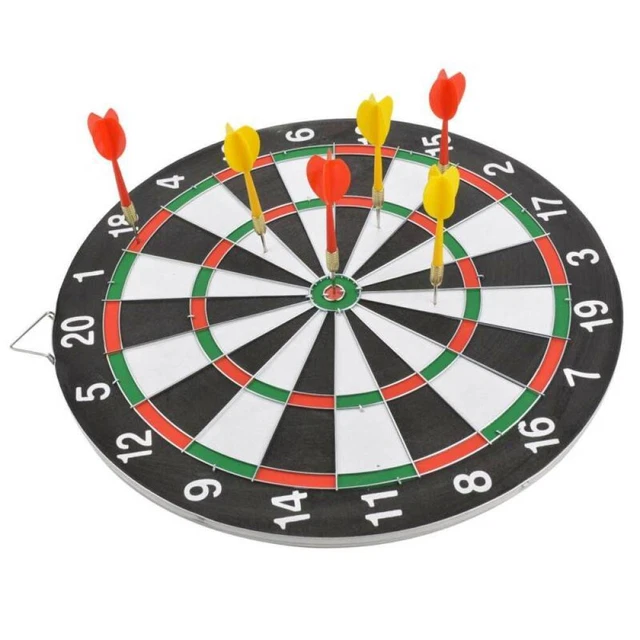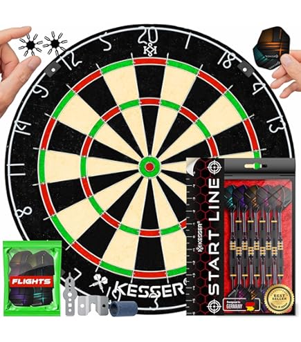 Darts wie in der Kneipe - nur bei dir daheim! Dieses komplette Set hat alles, was du für den Spielspaß brauchst: Eine robuste Sisal-Scheibe, die die Pfeile super hält und kaum abprallen lässt. Dazu 6 richtige Steel-Darts mit Stahlspitzen und rutschfesten Barrels für den perfekten Griff. Die Scheibe hat 45 cm Durchmesser und ist 3,8 cm dick - genau das Richtige für Anfänger und Fortgeschrittene. Einfach aufhängen und loslegen! Inklusive Montagematerial. Perfekt für den Spieleabend mit Freunden oder zum Training. Mach deine Wohnzimmerwand zur Dart-Arena!