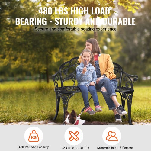 Gemütliche Sitzgelegenheit für deinen Garten! Diese stabile Bank aus Metall bietet Platz für zwei Personen und hält bis zu 250 kg aus. Mit eleganter PVC-Netzrückenlehne - sieht modern aus und ist super bequem. Der Carbonstahl-Rahmen ist witterungsbeständig - hält Sonne, Regen und Schnee problemlos stand. Einfach zusammenzubauen - vormontierte Teile nur noch zusammenstecken. Die geschwungenen Armlehnen sorgen für extra Komfort. Perfekt für Terrasse, Garten, Balkon oder Vorgarten. Mach deine Outdoor-Oase komplett! Ob zum Entspannen mit einem Buch oder für gesellige Abende mit Freunden - hier sitzt du perfekt. Die schwarze Farbe passt zu jedem Gartendesign. Einfach hinstellen und genießen! Robust und langlebig - deine Bank für viele Sommer! Pflegeleicht und stabil - einfach ab und zu abwischen.