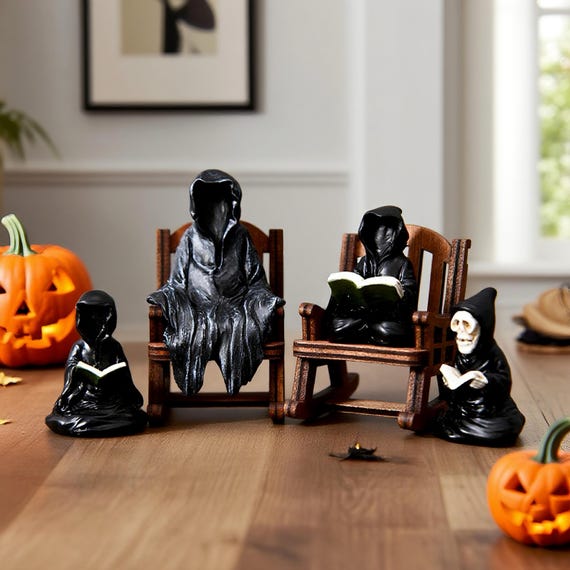 Oh wie süß! Dieser kleine sitzende Geist ist die perfekte Halloween-Deko - nicht zu gruselig, sondern einfach nur niedlich. Aus hochwertigem Resin gemacht, fühlt sich die Oberfläche richtig schön samtig an. Mit ca. 8 cm Höhe passt er super auf jeden Schreibtisch, Kaminsims oder ins Regal. Stell ihn zwischen Kürbisse und Kerzen - sofort hast du die richtige Halloween-Stimmung! Aber nicht nur zu Halloween: Die Figur macht auch als Dauer-Deko was her, besonders wenn du auf Geister und mystische Wesen stehst. Super als kleines Geschenk für Halloween-Partys oder einfach um deinem Zuhause etwas verspielten Charme zu verleihen. Die weiße Farbe passt zu jeder Einrichtung. Und weil er so leicht ist, kannst du ihn überall hinstellen ohne Angst, dass was kaputt geht. Ob alleine oder in einer Gruppe von Geistern - dieser kleine Kerl bringt einfach gute Laune. Perfect für alle, die Halloween lieben aber nicht unbedingt die blutige Horror-Variante!