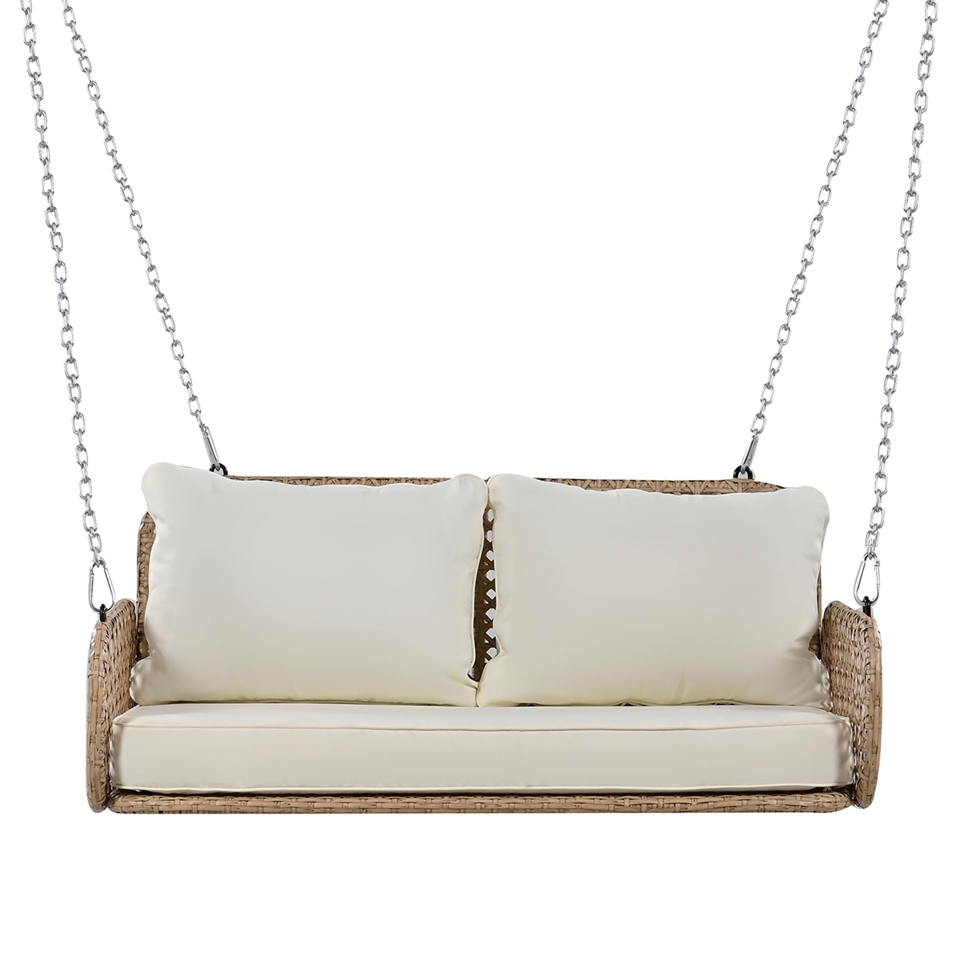 GOPLUS Rattan Hängebank 2-Sitzer - Gartenschaukel Aus Massivholz Mit 360kg Tragkraft