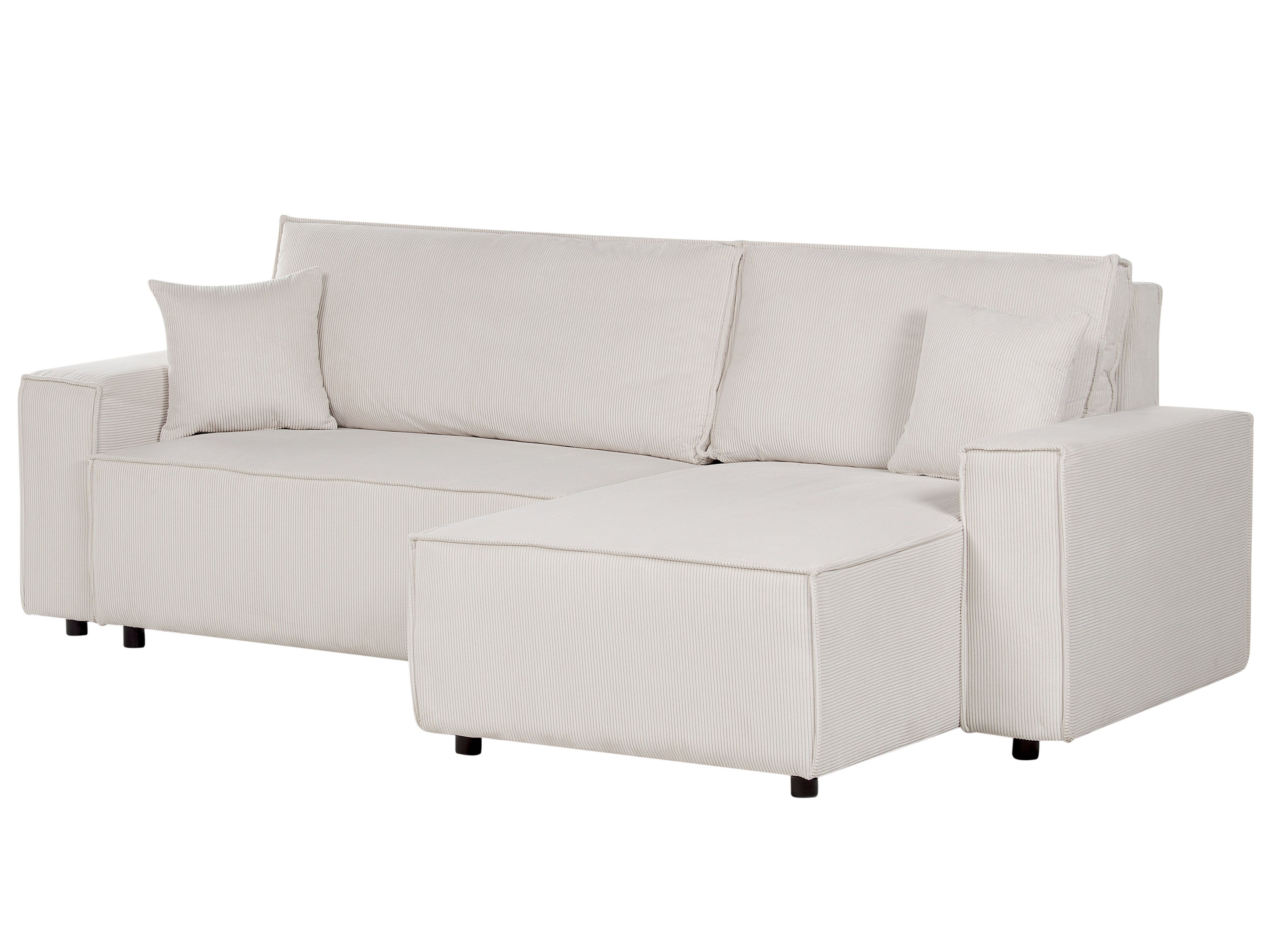 ZX Design Ecksofa 3-Sitzer Mit Schlaffunktion - Cord Sofa Mit Polsterhocker Grau