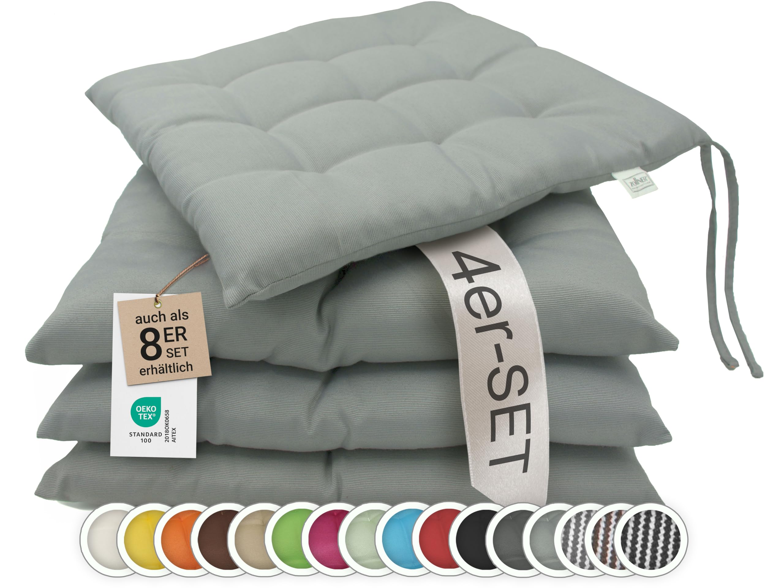Yunlaishaocer 4er Set Sitzkissen 40x40cm - Rundpolster Für Gartenstühle & Bürostühle Dunkelgrau