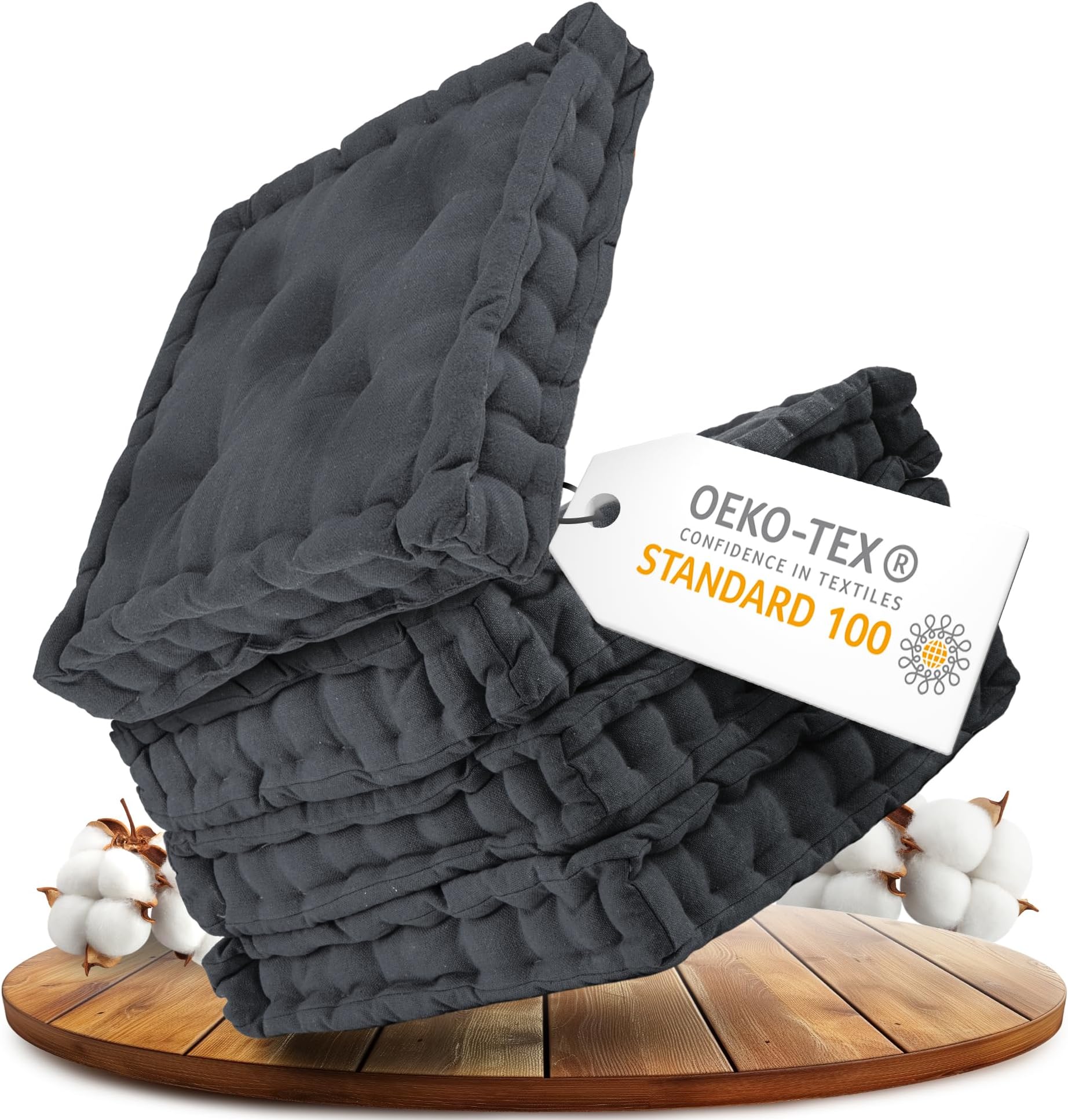 Endlich bequem sitzen! Dieses 4er Set mit runden Sitzkissen in 40x40cm macht jeden Stuhl gemütlich. Aus hochwertigem Polyester mit weicher Perlenbaumwoll-Füllung - super bequem und atmungsaktiv. Perfekt für Gartenstühle, Balkonmöbel, Bürostühle oder Esszimmerstühle. Die dunkelgraue Farbe passt zu fast jedem Einrichtungsstil. Besonders praktisch: Die Kissen sind bei 30°C waschbar - einfach in die Maschine und schon sind sie wieder frisch. Nach dem Waschen einfach aufklopfen und in der Sonne trocknen lassen. Extra dick für optimalen Sitzkomfort, mit rutschfestem Stoff der sicher auf dem Stuhl bleibt. Ob drinnen oder draußen - mit diesen Kissen sitzt du einfach besser! Einfach auf die Stühle legen und den Komfort genießen.