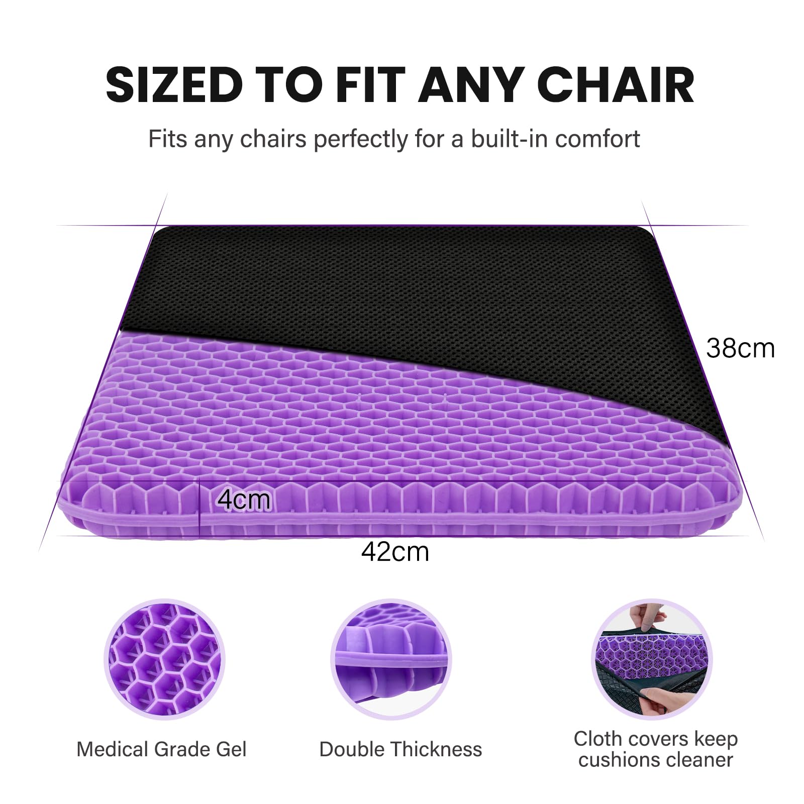 Dieses Gel-Sitzkissen ist einfach himmlisch bequem! Die spezielle Wabenstruktur verteilt den Druck optimal und sorgt dafür, dass man auch nach Stunden noch entspannt sitzt. Das TPE-Gel hat einen Memory-Effekt - es passt sich perfekt eurer Körperform an und springt danach wieder in die Ursprungsform zurück. Super für alle, die viel sitzen müssen: im Büro, im Auto, zu Hause auf dem Sofa oder sogar im Rollstuhl. Der Bezug ist abnehmbar und maschinenwaschbar - praktisch und hygienisch! Die Unterseite ist rutschfest, damit das Kissen auch bei wilderen Bewegungen nicht verrutscht. Das offene Wabendesign sorgt für super Belüftung - kein schwitziger Rücken mehr im Sommer! Leicht und tragbar, nehmt es einfach mit ins Büro, ins Auto oder auf Reisen. Egal ob bei Rückenproblemen oder einfach nur für mehr Komfort - dieses Kissen macht jeden Stuhl bequemer. Probiert es aus - euer Rücken wird's euch danken! Einfach draufsetzen und den Unterschied spüren.