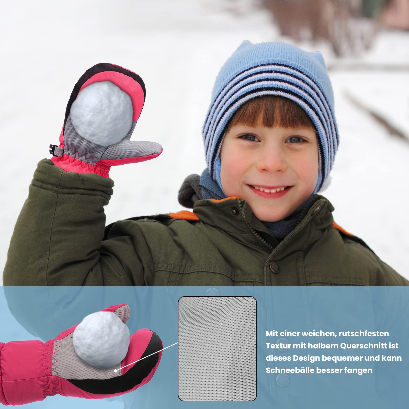 Perfekter Kälteschutz für kleine Abenteurer! Diese super praktischen Skihandschuhe für Kinder von 8-12 Jahren halten kleine Hände warm und trocken. Vollständig wasser- und winddicht schützen sie selbst bei heftigstem Schneetreiben. Der Klettverschluss am Handgelenk sorgt für perfekten Sitz und verhindert, dass Schnee eindringt. Die rutschfeste Handfläche aus Oxford-Stoff gibt sicheren Halt beim Skifahren, Snowboarden oder Schlittenfahren. Das atmungsaktive Polyester-Material innen und außen sorgt dafür, dass die Hände nicht schwitzen. Ob für den Skiurlaub, Winterwandertouren oder einfach nur fürs Schneemannbauen - diese Handschuhe sind die idealen Begleiter für alle Outdoor-Aktivitäten im Winter. Die elastische Passform macht sie super bequem und die robuste Verarbeitung hält auch wildesten Spielen stand. Dein Kind kann sich austoben, ohne dass dir um kalte Hände sorgen musst! Einfach anziehen und raus in den Schnee - winterlicher Spaß garantiert!