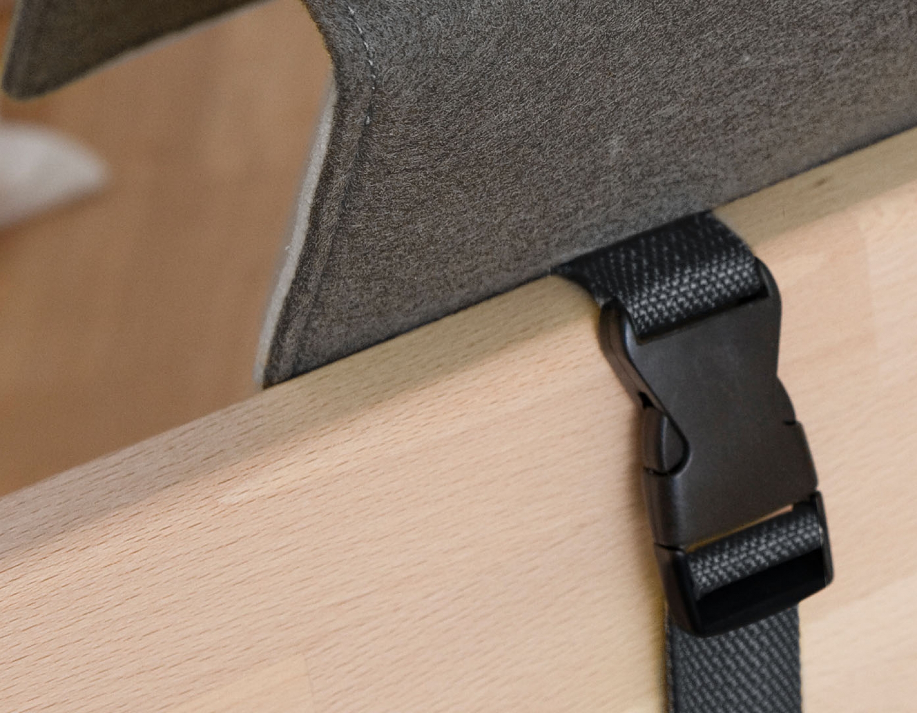 Endlich Ordnung am Bett! Der Bett Butler Slappy ist dein neuer bester Freund für alles, was du nachts griffbereit brauchst. Mit drei praktischen Taschen aus hochwertigem Filz hast du Platz für Buch, Fernbedienung, Brille, Handy und was dir sonst noch so einfällt. Die ca. 90 cm langen Spanngurte machen die Montage zum Kinderspiel - einfach um den Bettrahmen spannen, und schon ist alles sicher verstaut. Und das Beste: Von außen siehst du fast nichts davon! Das zweifarbige Design in Dunkelgrau/Hellgrau passt zu fast jedem Schlafzimmer. Aus 30% Wolle und 70% Polyester - robust und langlebig. Nie wieder suchen, einfach liegen bleiben und genießen!