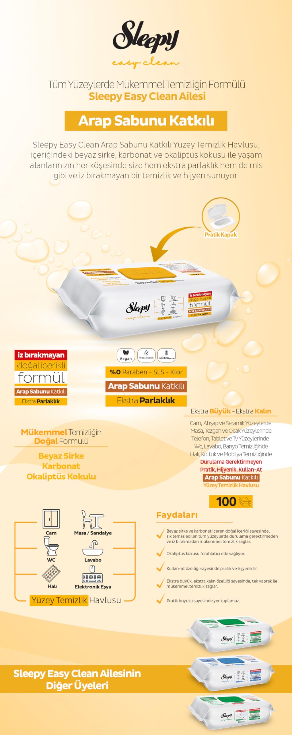Sleepy Easy Clean Allzweck-Reinigungstücher 6x100 Stück - 6 Sorten Für Haushalt & Hygiene