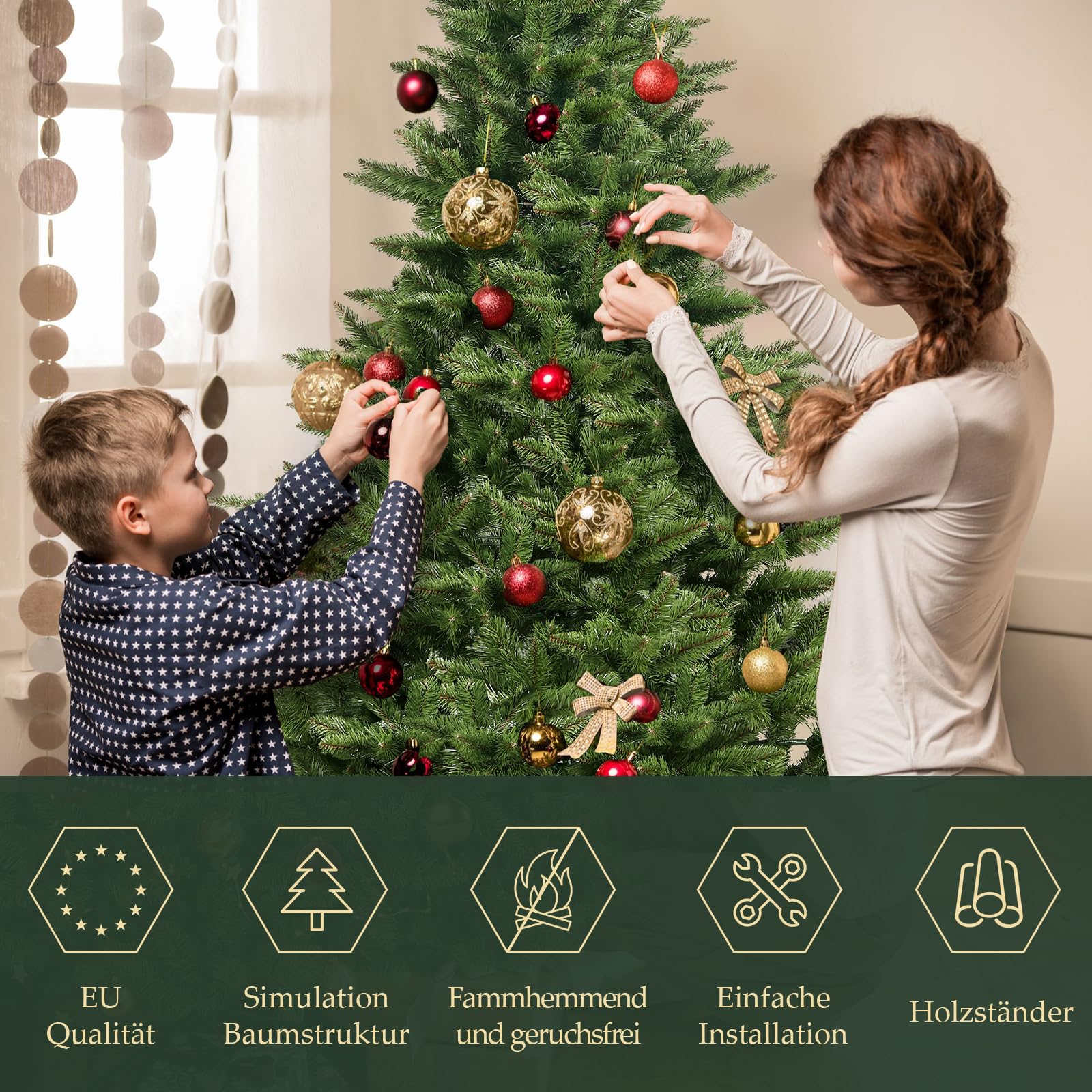 Wow, dieser schlanke Weihnachtsbaum von SALCAR ist perfekt für alle mit wenig Platz! Mit 180cm Höhe und der super schmalen Pencil-Form passt er auch in die kleinste Ecke oder den engen Flur. Die naturgetreuen Nadeln aus PE und PVC sehen täuschend echt aus - da werden deine Gäste staunen! Aufbau? Total easy! Einfach die klappbaren Zweige ausbreiten und in den stabilen Metallständer stecken - fertig! Kein lästiges Nadeln, kein Gießen, kein teurer Baumkauf jedes Jahr. Einfach nach Weihnachten zusammenklappen und bis nächstes Jahr verstauen. Super praktisch und umweltfreundlich! Besonders sicher für Haushalte mit Kindern oder Haustieren - die weichen Zweige sind absolut ungefährlich. Ob im Wohnzimmer, Büro oder Schaufenster - dieser Baum macht überall eine elegante Figur! Endlich Weihnachtsstimmung auch in kleinen Wohnungen!