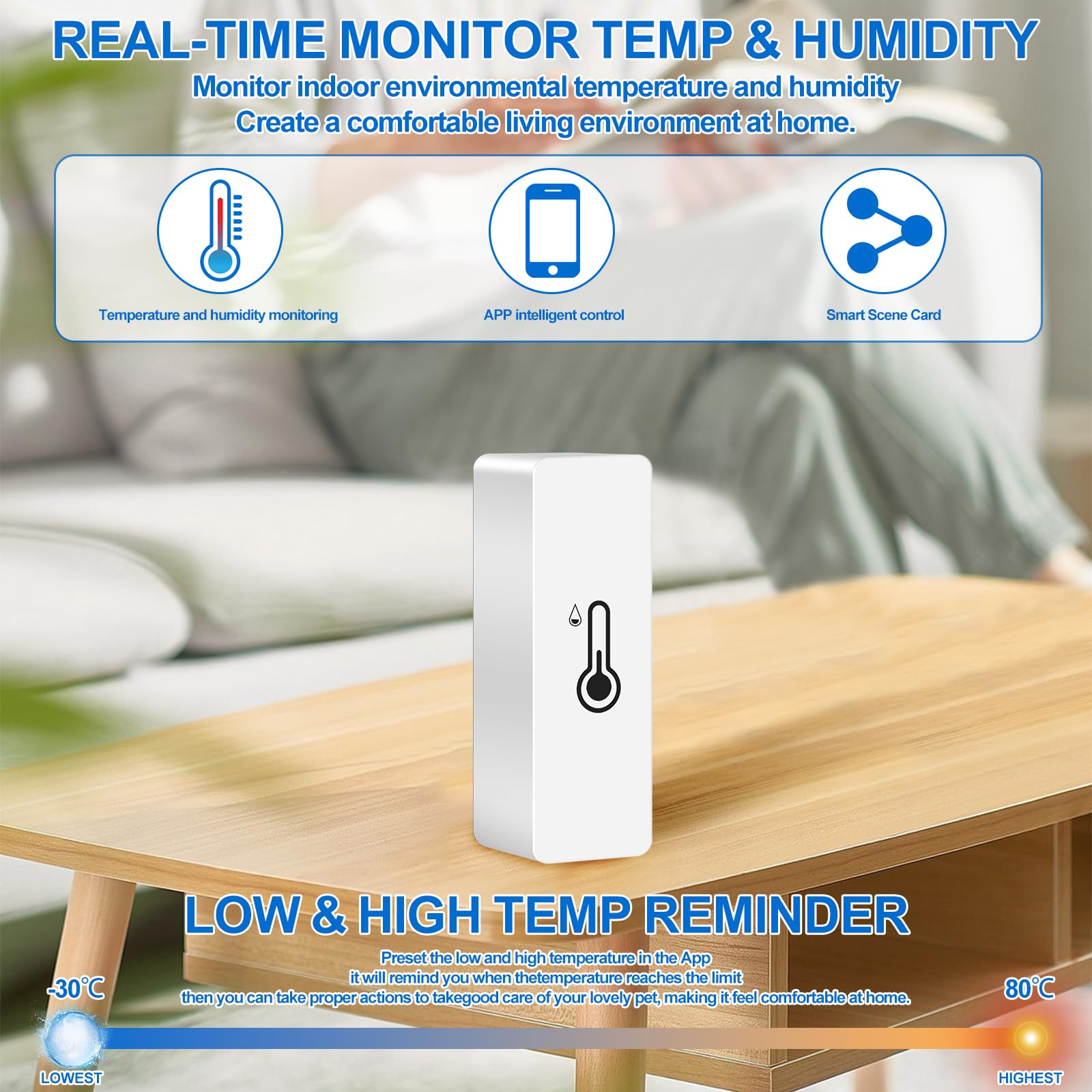 Immer im Blick: Temperatur und Luftfeuchtigkeit! Diese 2 smarten Thermometer messen genau und übertragen per WLAN auf dein Smartphone. Temperaturbereich -20°C bis +60°C - für innen und außen. Feuchtigkeit von 10% bis 99% RH - perfekt für gesundes Raumklima. Smart Life/Tuya App - Echtzeit-Überwachung und Benachrichtigungen. Kompatibel mit Alexa und Google Home - Sprachsteuerung möglich. Automatische Szenen - schaltet z.B. Klimaanlage bei zu hoher Temperatur ein. Speichert Daten über 2 Jahre - exportierbar als CSV. Mini-Größe - unauffällig in jedem Raum. Perfekt für Wohnung, Gewächshaus, Weinkeller oder Büro. Mach dein Zuhause smarter - mit diesen praktischen Sensoren!