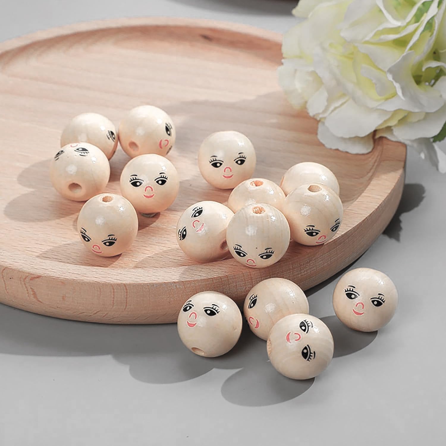 Niuhong 60-teiliges DIY Set Mit Smiley Holzperlen & Kleeblatt Anhängern - 20mm Für Makramee Und Bastelprojekte