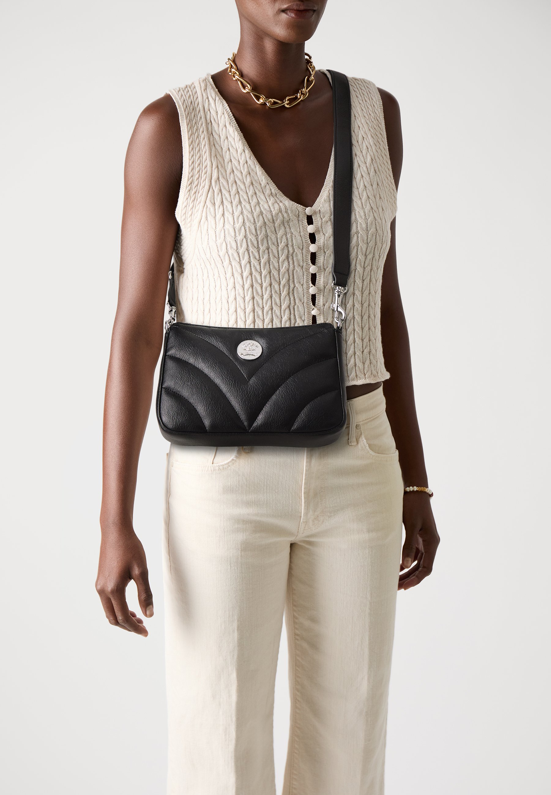 Wow, diese JOOP! Tasche ist einfach nur stylisch! Gestepptes Design - sieht aus wie echtes Leder, ist aber aus veganem Polyurethan. Maße 24x16x6cm - perfekt für Alltag oder Business. Mit abnehmbarem, verstellbarem Schulterriemen (82-136cm). Innen praktische Fächer - alles hat seinen Platz. Verstärkter Boden - steht stabil und kippt nicht um. Weiche Oberfläche - fühlt sich super an. Nur 320g leicht - kaum spürbar auf der Schulter. Schwarz mit silbernen Details - zeitlos elegant. Einfach umhängen und du bist perfekt gestylt! Echt eine Tasche die auffällt ohne aufdringlich zu sein!