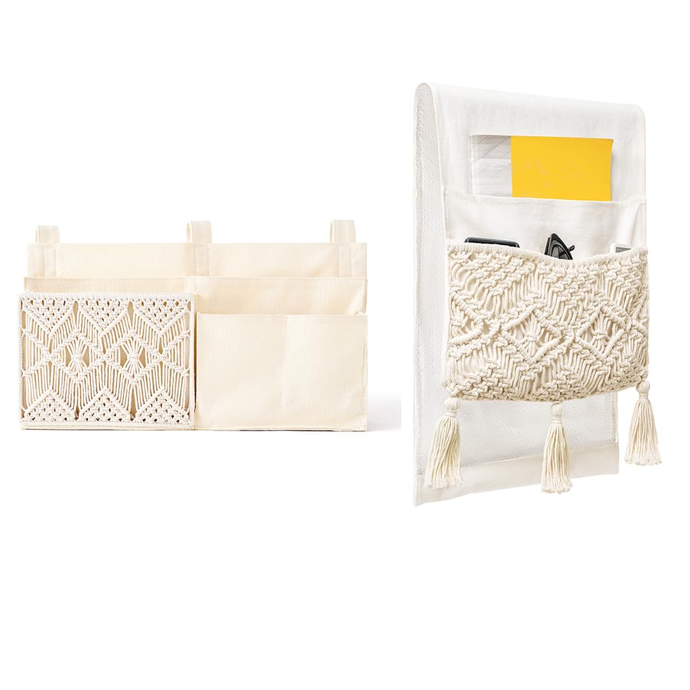 Macrame Sofa Organizer Beige - Fernbedienung Halter Armlehne