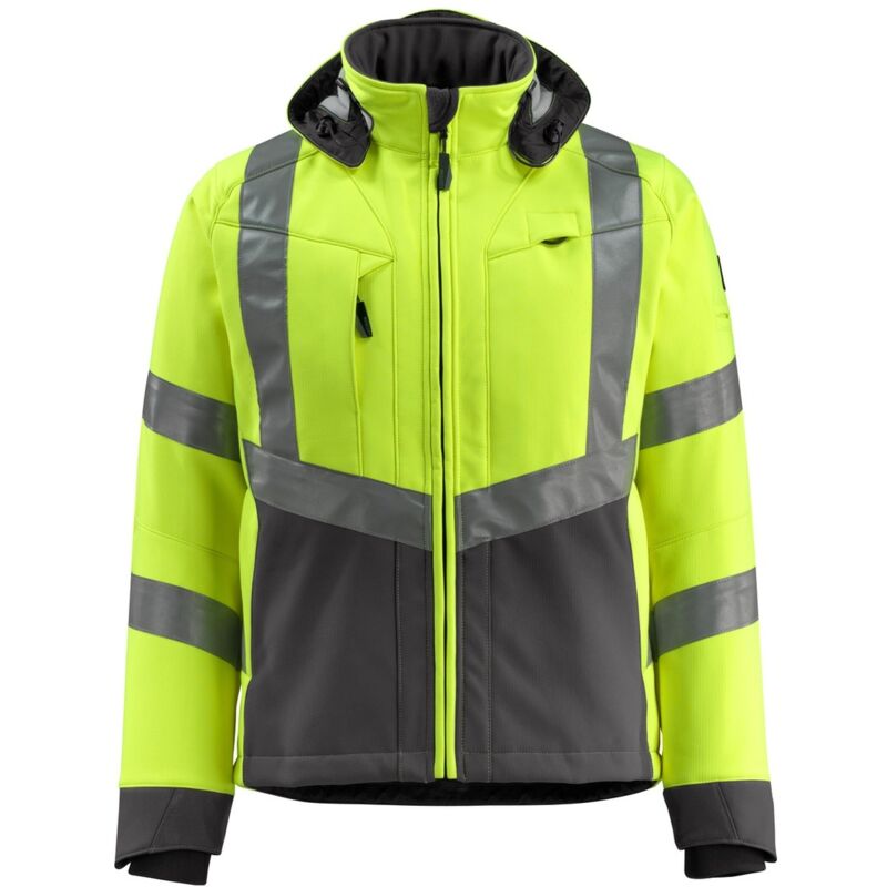 Perfekte Arbeitsjacke für alle, die auch bei schlechtem Wetter gut sichtbar sein müssen! Die MASCOT Blackpool Softshelljacke in Gelb/Schwarz-Blau ist nicht nur super praktisch, sondern auch richtig sicher. Mit fluoreszierendem Material und Reflexstreifen an Schultern und Seiten wirst du garantiert gesehen. Die Jacke ist atmungsaktiv, winddicht und wasserabweisend - ideal für den Einsatz im Freien. Drinnen ist sie mit kuscheligem Fleece gefüttert, die Kapuze kannst du bei Bedarf abnehmen. Besonders clever: Die spezielle Innentasche fürs Handy mit Öffnung fürs Kopfhörerkabel! Dazu kommen praktische Features wie Brusttasche mit Reißverschluss, D-Ring für Schlüssel und Stifttasche. Die Ärmel mit CORDURA®-Verstärkungen und Klettverschluss halten ewig. Aus robustem Polyester, 1er Pack. Verpackungsmaße: 40x27x14 cm, Gewicht: 1,18 kg. Ein echter Allrounder für Handwerker, Gärtner oder alle, die eine zuverlässige Outdoor-Jacke brauchen!