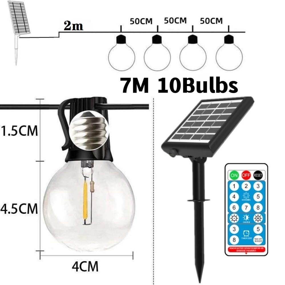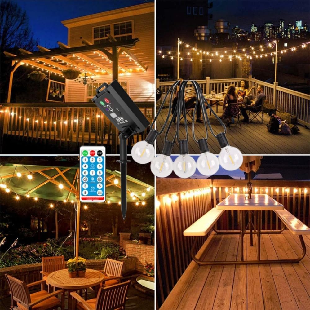 Magische Atmosphäre für deinen Garten! Diese 9.5m lange Solar-Lichterkette mit 25 LED-Lichtern macht jeden Abend romantisch. IP65 wasserdicht - hält jedem Wetter stand. Mit Fernbedienung und 8 verschiedenen Lichtmodi (Kombination, Welle, Blitz etc.). G40 Glühbirnen aus bruchsicherem Kunststoff. Lädt bei Sonne 4-6 Stunden, leuchtet dann 8-10 Stunden. Timer-Funktion für 3,5 oder 8 Stunden. Einfache Montage mit Haken oder Spikes. Perfekt für Balkon, Terrasse, Garten oder Pavillon. Schafft traumhafte Stimmung ganz ohne Stromkosten!