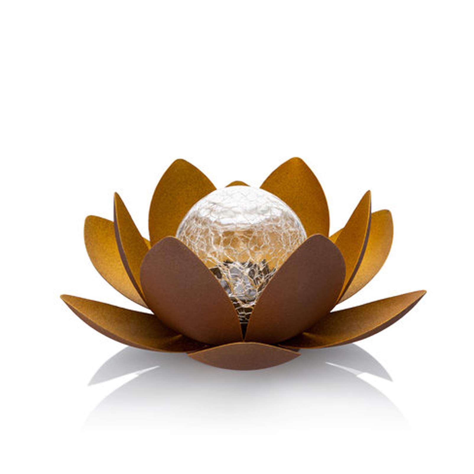 Solar Lotusblüte Mit Crackleglas Kugel - 25cm Garten Deko Leuchte
