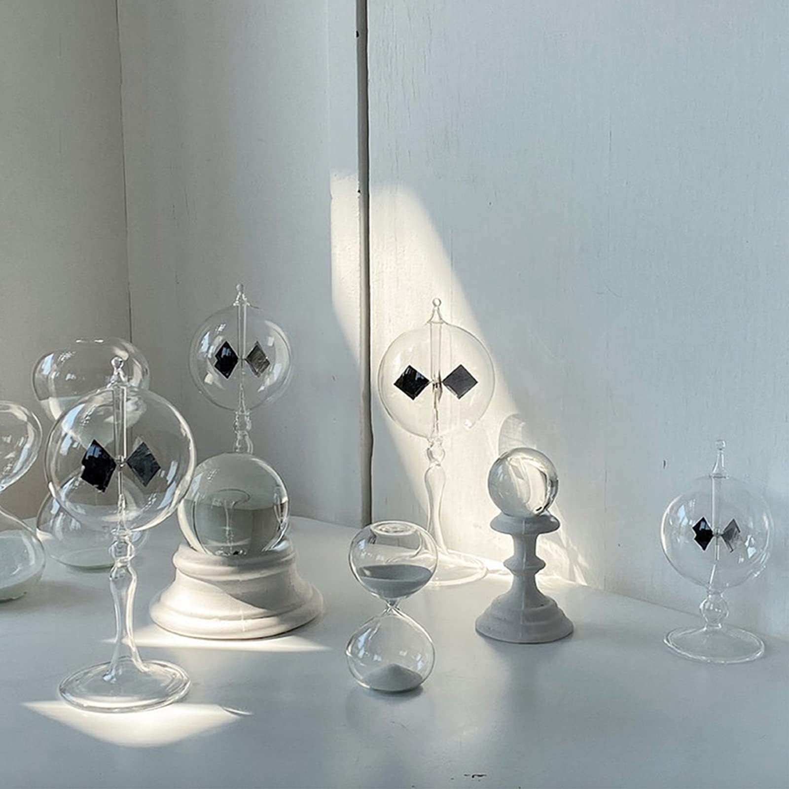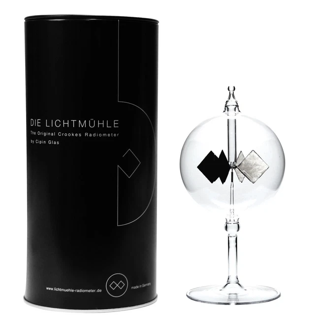 Wow, dieses Crookes Radiometer ist einfach faszinierend! Die Glaswindmühle mit ihren 4 Flügeln dreht sich wie von Zauberhand, sobald Licht darauf fällt. Erfunden wurde das Teil schon 1873, aber es ist immer noch ein absoluter Hingucker. Die Glaskugel ist teilweise evakuiert, und die Flügel sind auf einer Seite poliert, auf der anderen schwarz. Sobald Sonnenlicht, künstliches Licht oder sogar die Wärme deiner Hand drauffallen, fangen sie an sich zu drehen - die schwarzen Seiten bewegen sich von der Lichtquelle weg. Einfach ans Fenster stellen oder unter ne Glühlampe, und schon geht's los! Je mehr Licht, desto schneller dreht es sich. Mit nem Durchmesser von 3,5 Zoll und 8 Zoll Höhe ist es perfekt für den Schreibtisch, Regal oder als coole Deko. Super als Geschenk für Neugierige, Physik-Fans oder einfach alle, die was Besonderes suchen. Einfach hinstellen und staunen!