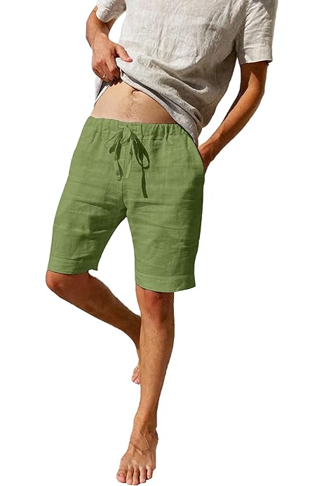 Herren Leinen Shorts Sommer - Leichte Freizeithose Mit Taschen
