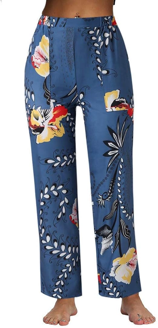Kendindza Damen Sommerhose - Leichte Blumen-Hose Für Strand & Urlaub