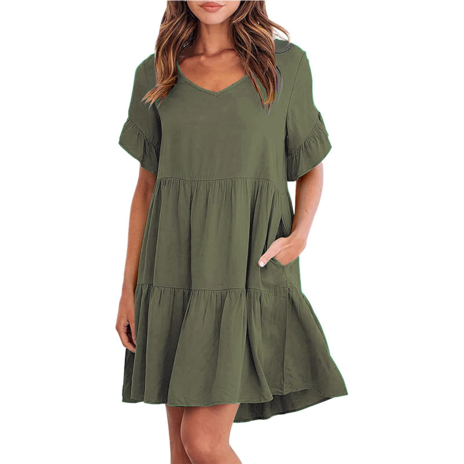 Sommerkleid Damen 2025 Leicht & Luftig - V-Ausschnitt Kurzarm A-Linie Strandkleid Elegant