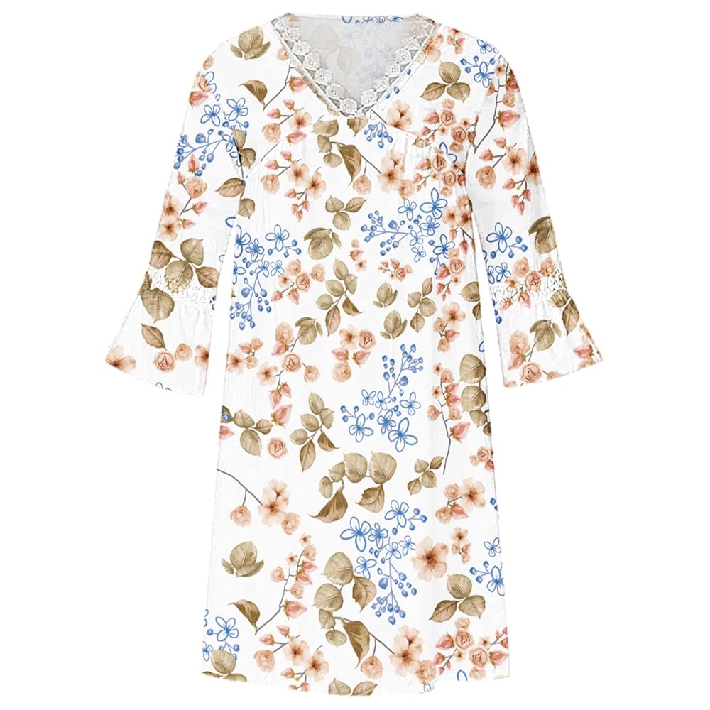 Sommerkleid Damen Knielang Mit 3/4 Ärmel - Boho Blumenkleid V-Ausschnitt | Ethno Style Für Strand & Festival